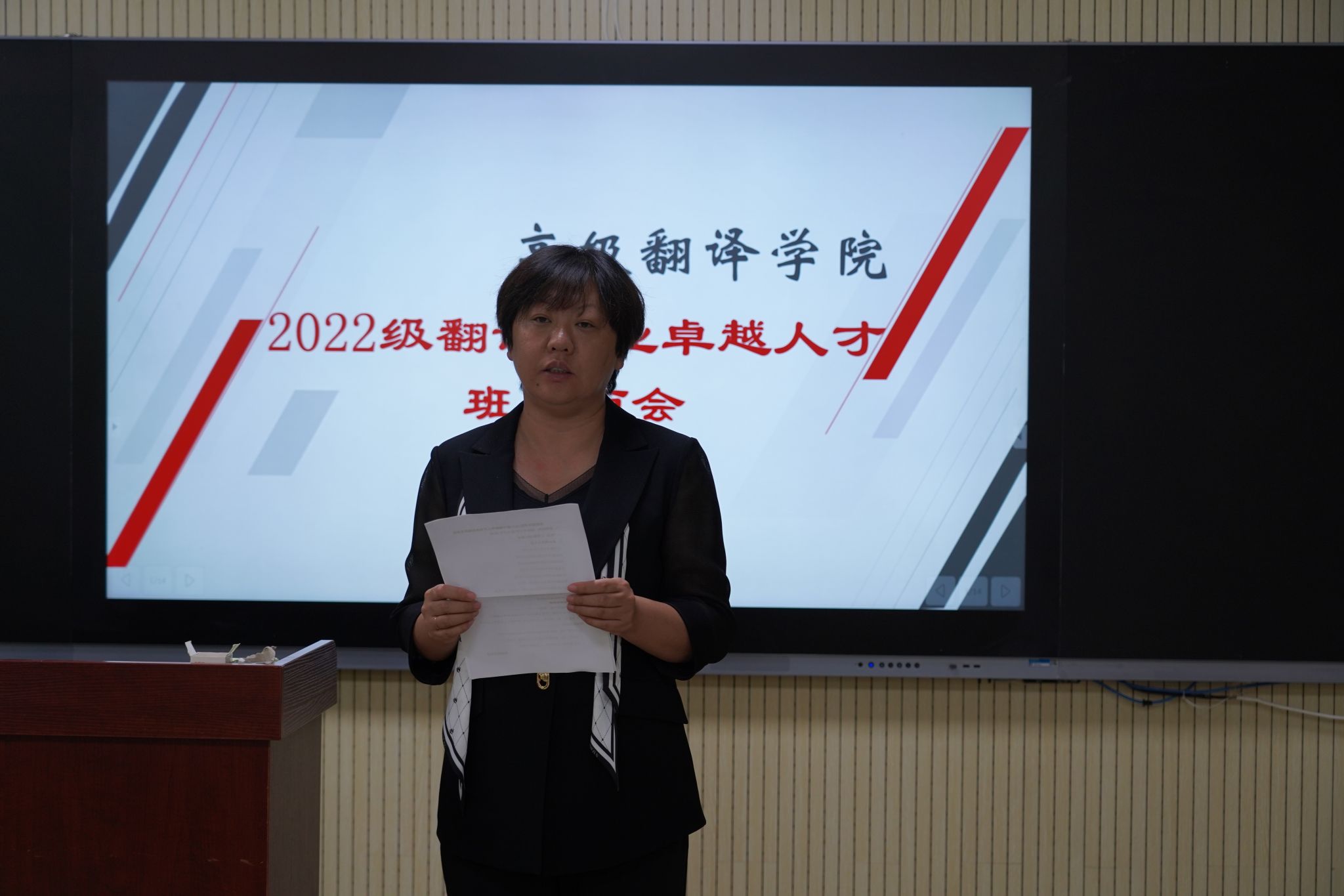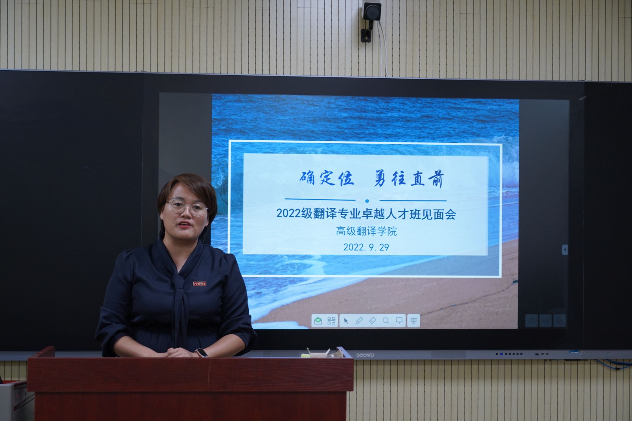 为进一步帮助高级翻译学院2022卓越班学子们明确学习规划,树立学习目标,并能更好地适应、融入卓越班新集体。9月29日下午高级翻译学院召开2022级翻译专业卓越人才班见面会。高级翻译学院院长袁小陆、党委书记、副院长蒋小军,副院长张睿、张莹,综合班主任简实、副主任刘红娟,系主任赵铮、罗飞,教师代表郭小华、于英俊、李梦茜出席本次会议,2022级卓越班全体学生参加会议。会议由副院长张睿主持。