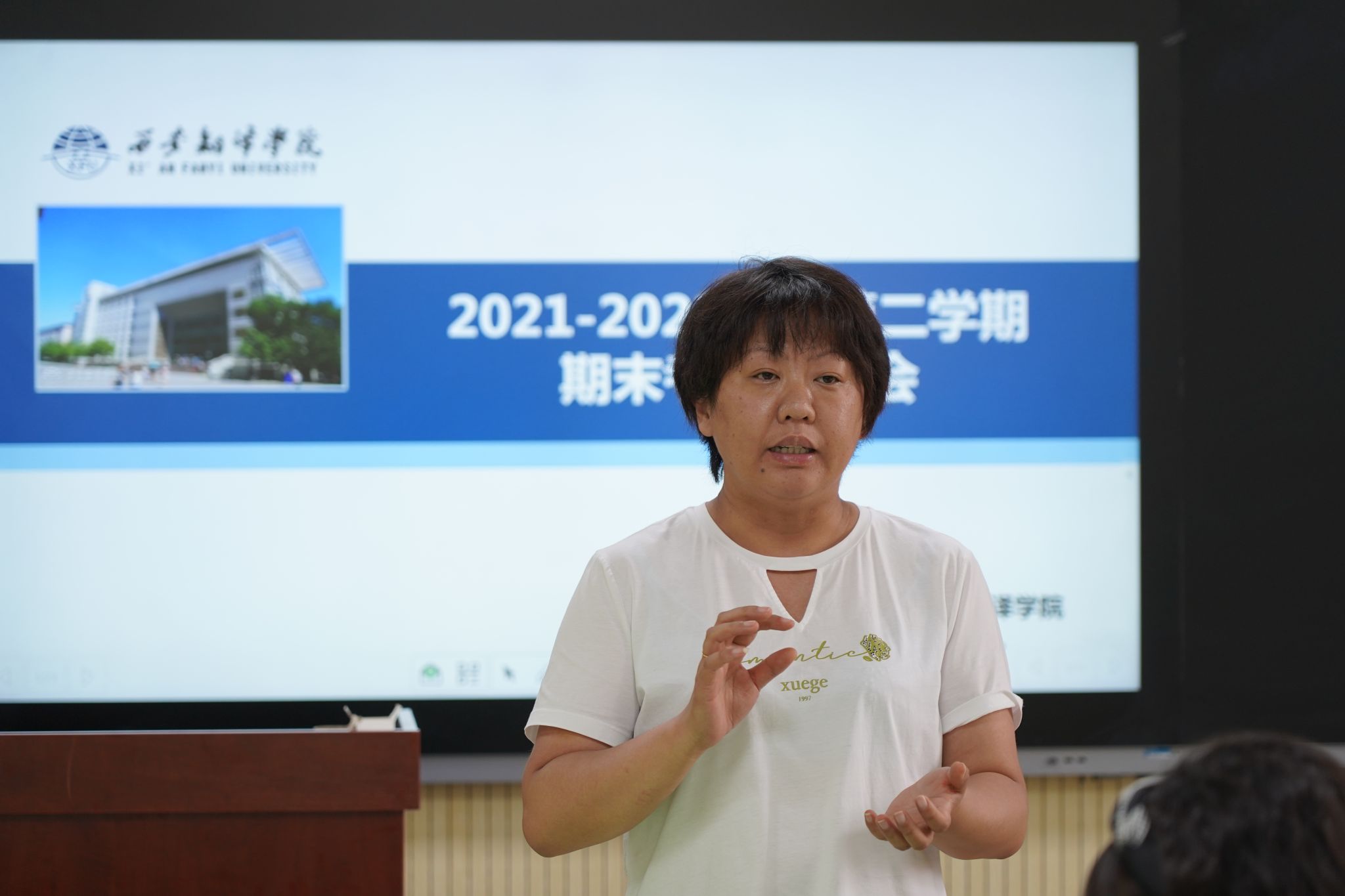 就期末考试,她指出,我校将迎接本科教学水平审核评估及学院迎接国家级一流专业审核评估,期末考试要在考务管理、命题、阅卷、成绩登记、试卷分析等环节上做到高标准严要求,最后,她强调,不论教学还是考试,参与其中都是对我们能力的一种提升,是自我价值的实现过程,希望大家以高度负责的精神,全力做好本次四六级考试工作和期末考试工作。