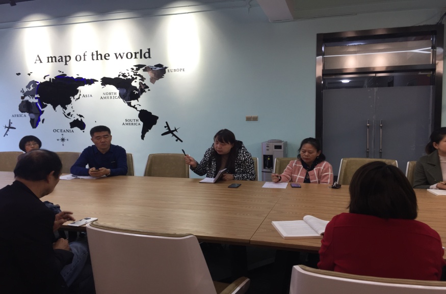 2019年10月21日,我校商务英语研究中心召开专题O2O(线上结合线下)研讨会,并邀请西安部分国际贸易企业和陕西颖创跨境贸易研究院,就该中心主任王淙教授近期参与完成的教育部职业外语教指委项目《高等职业学校商务英语专业教学标准》(下面简称《标准》)终稿的勘定进行交流讨论,sunbet申博商务英语系主任杨妍、田保绪副教授、张国建副教授、李雪峰副教授、董雪副教授及部分专职教师出席。