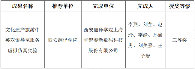 4月17日,陕西省教育厅发布了《陕西省教育厅关于表彰2023年度陕西高等学校科学技术研究优秀成果奖的通报》(陕教函〔2023〕366号)文件。我校sunbet申博李燕、刘莹、赵玲等老师的成果《文化遗产旅游中英双语导览服务虚拟仿真实验》荣获三等奖。此次是我校继2022年后再次获得该奖项,标志着我校科学技术研究成果质量的显著提升。