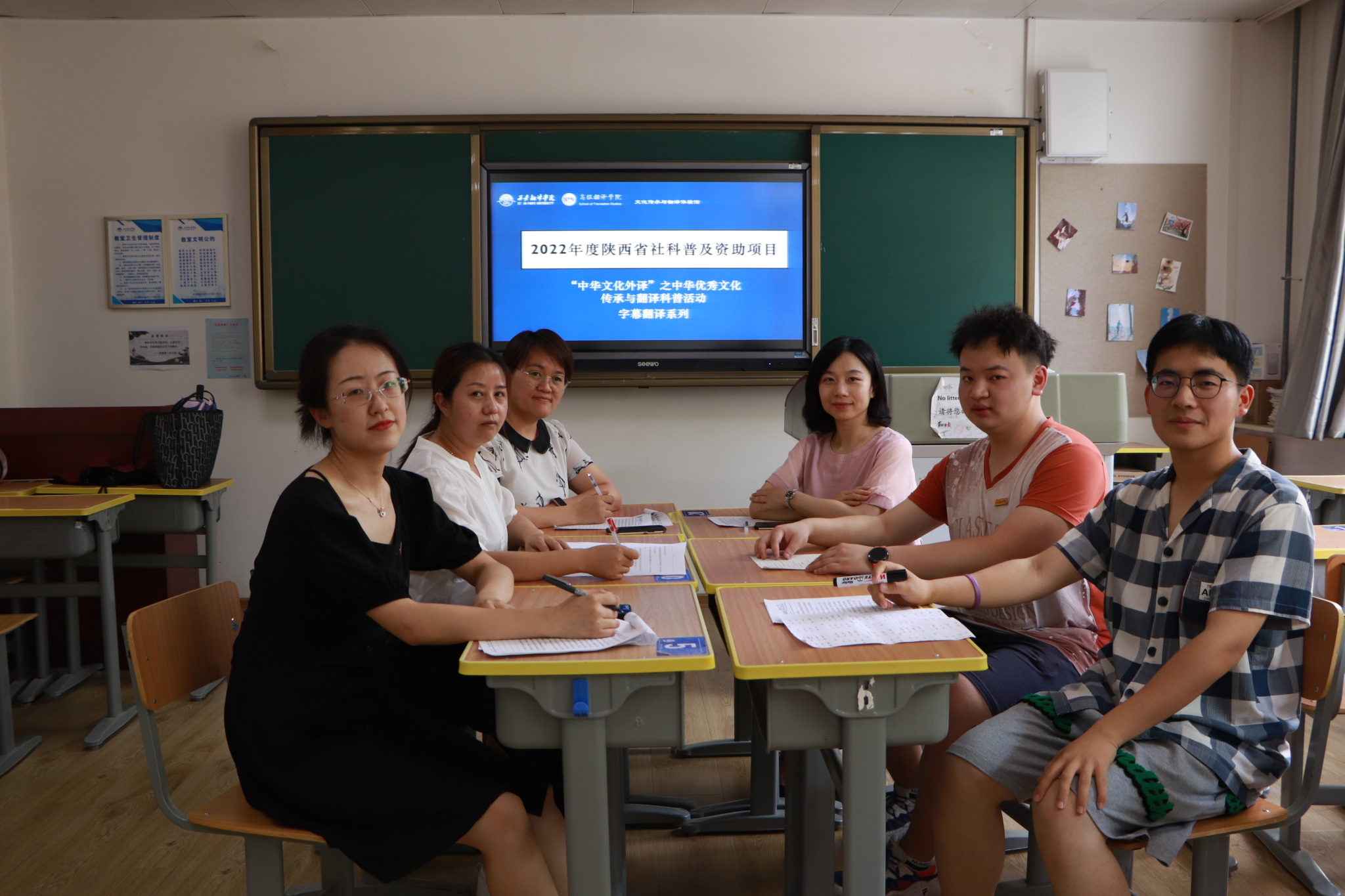 2022年6月17日下午,高级翻译学院文化传承与翻译体验馆科普基地召开2022年度陕西省社科普及资助项目启动会议,该项目为“中华文化外译”之中华优秀文化传承与翻译科普活动:字幕翻译系列。本次项目由负责人张瑜老师主持,郭小华、田径、李梦茜等老师和部分学生参加了本次活动。