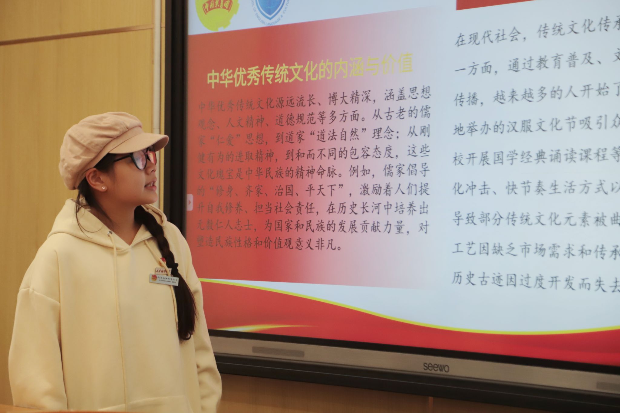 团课伊始,团总支文体部部长谢周煊围绕中华优秀传统文化的传承与发展、“两个结合”的重大意义、文化自觉与文化自信的内在关系以及文教体育在文化传承中的关键作用等四个重要方面,对本次团课主题展开了深入且细致的探讨。