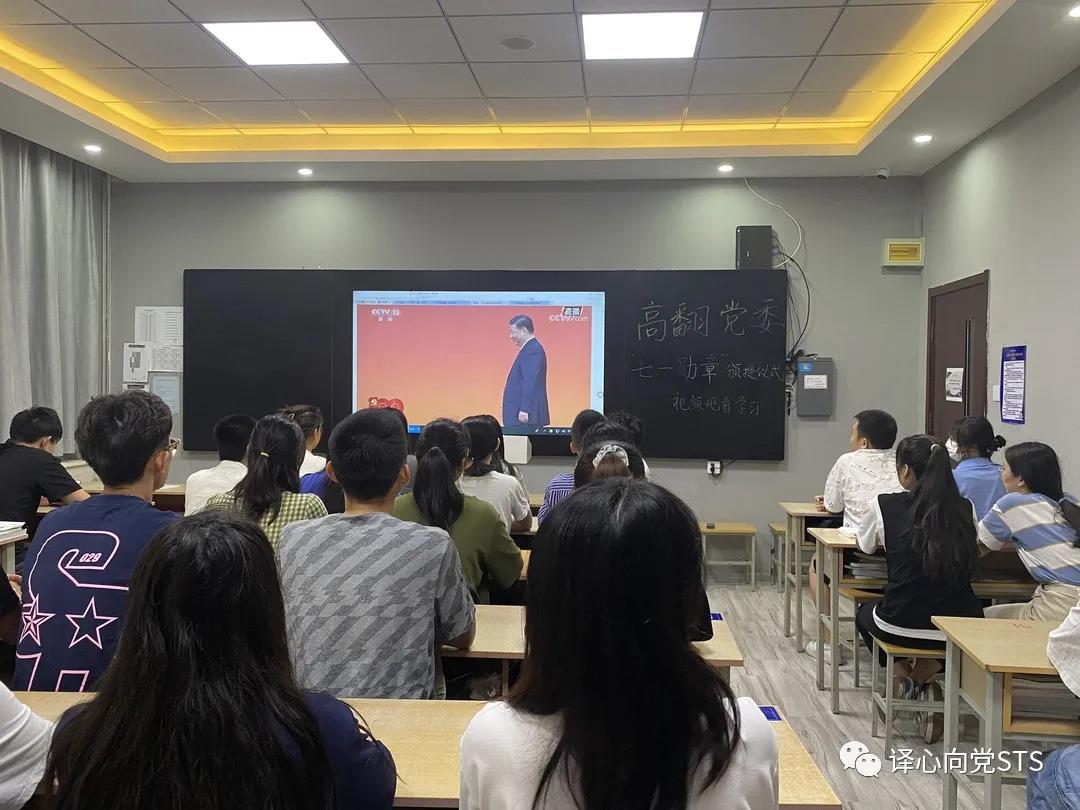 为庆祝中国共产党成立100周年,根据《中共中央关于授予“七一勋章”的决定》,授予29名同志“七一勋章”。6月29日上午10:00高级翻译党委组织师生党员在2号楼2102教室共同观看“七一勋章”授予仪式的现场视频。