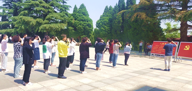 在渭华起义烈士纪念碑前,院党委副书记蒋小军和组织委员杨春娟向革命烈士纪念碑敬献了花篮并仔细整理花篮缎带。青年委员梅洁带领全体师生党员在纪念碑前重温了入党誓词。