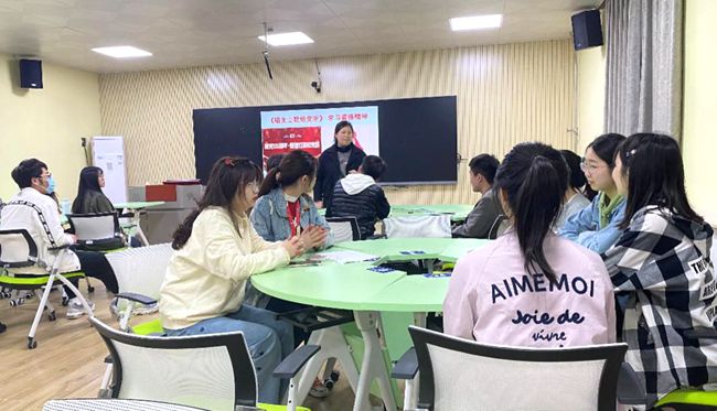 “心中有信仰,脚下有力量”。2021年4月16日,高级翻译学院党委第三支部开展了“百年青春心向党 不负韶华得玉成”党史学习教育之二——《唱支山歌给党听》红歌背后的故事,用歌声唱响红色历史,追忆峥嵘岁月。本次学习由第三支部书记陈晓楠主持。