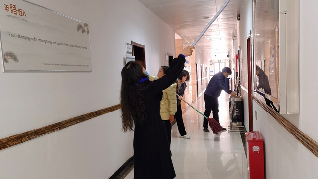 细化暖心服务,彰显人文关怀。为进一步加强疫情防控,创建整洁的环境卫生条件,学工办对各班教室、实验室进行卫生大扫除。辅导员们戴上口罩,拿起扫把,分工合作,对公共教学区进行彻底打扫,不留卫生死角。经过两天的努力,各班教室变得整洁温馨,以全新的面貌迎接同学们的归来。