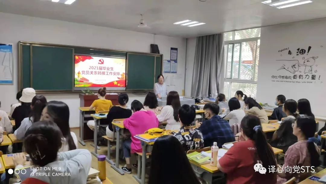 为了2021届毕业生党员顺利转出党关系,2021年5月18日下午,高级翻译学院党委在2017教室组织召开毕业生党员关系转接工作部署大会,参加会议的有2021届50余名毕业生党员,高翻院第三支部书记出席会议,会议由高级翻译学院党委组织委员杨春娟主持召开。