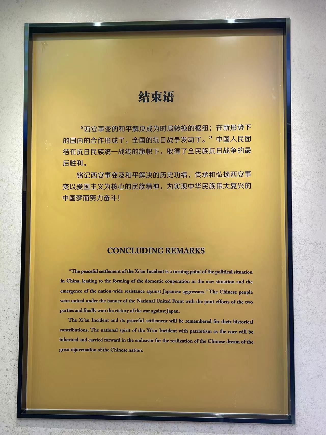 西安事变纪念馆是中国革命历史的重要见证,也是中国爱国主义教育的重要基地。通过参观西安事变纪念馆,同学们更加深入地了解了抗日民族统一战线的建立,感受到了中华民族的伟大精神和爱国主义情怀。本次参观使各位同学对自己的责任和使命有了更深刻的认识,必须牢记党的宗旨,坚定信仰,不断提高自己的政治素质,不断学习、进步,为实现中华民族伟大复兴而努力奋斗。