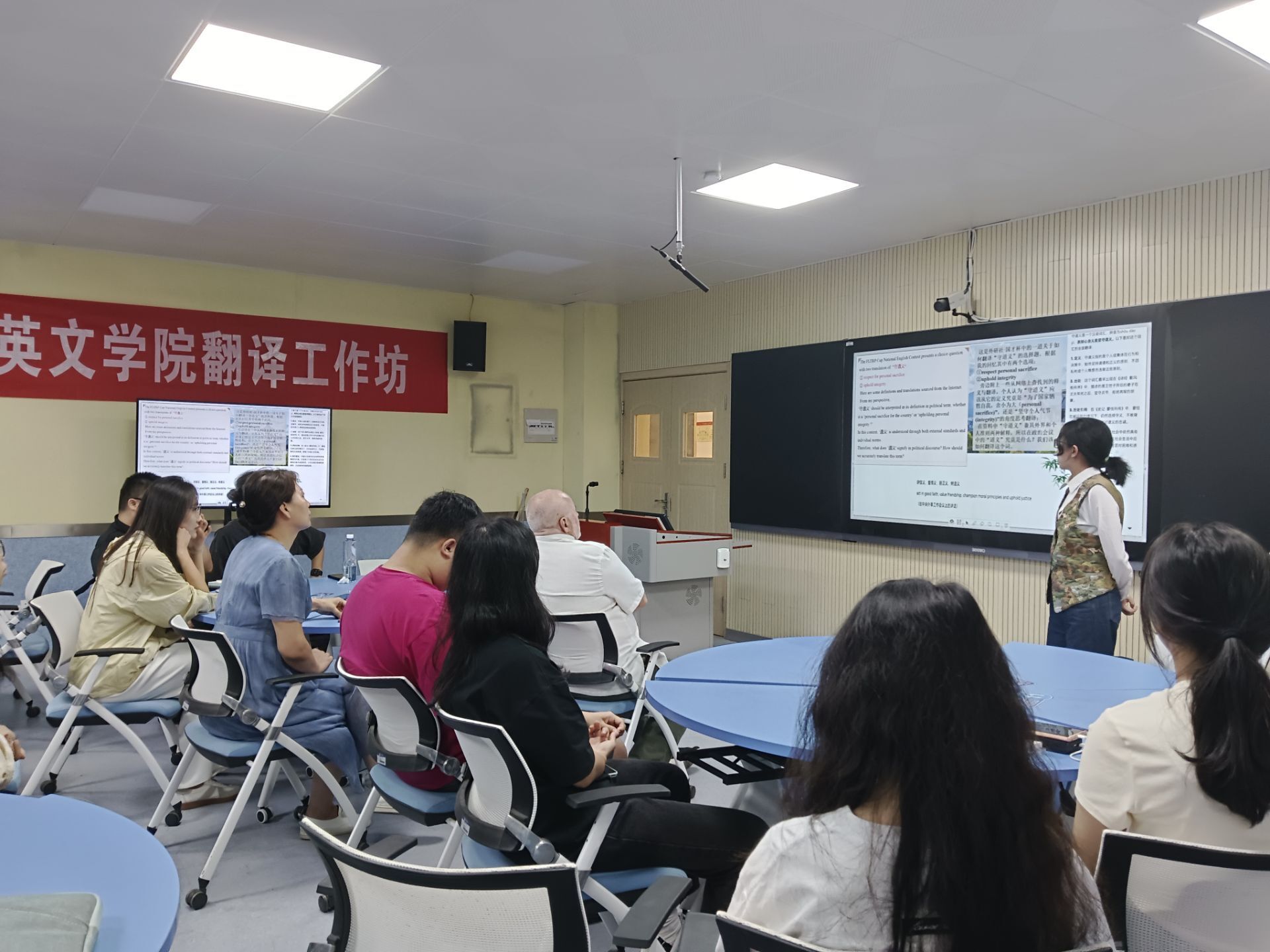 英国翻译家、西译客座教授蒲华杰分别于9月24日和26日两天下午在4108M教室,就中国文化翻译主题对sunbet申博翻译工作坊约20名师生展开了深入而富有成效的指导和讨论活动。