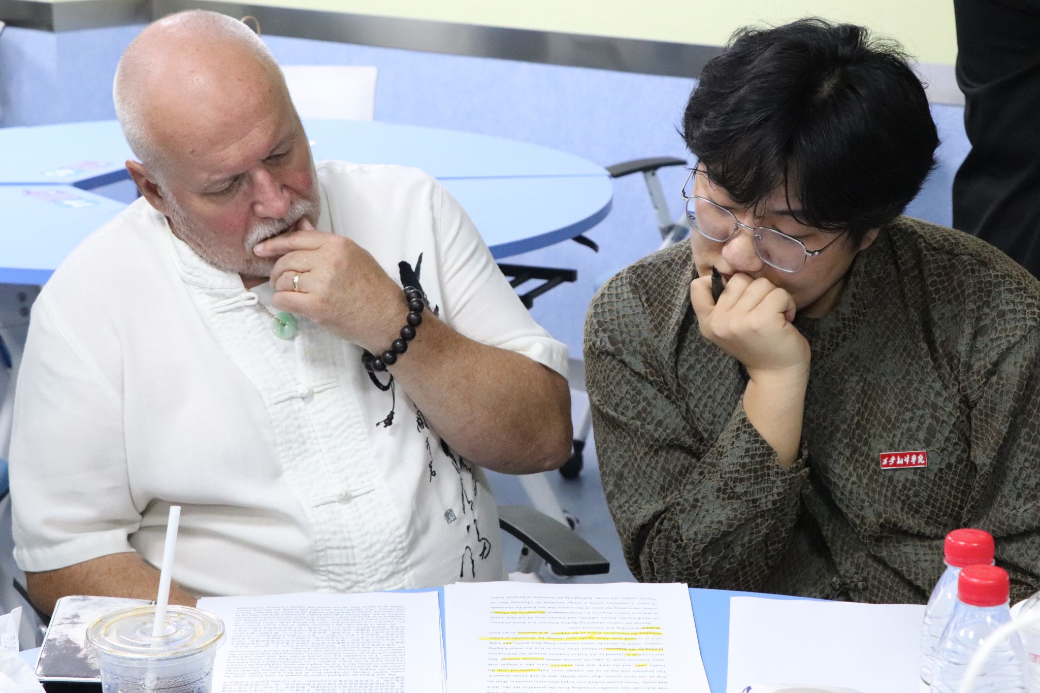 蒲华杰教授不仅在翻译领域有着深厚的造诣,而且在推广中国文化方面也有着丰富的经验。他的到访为项目组成员提供了宝贵的学习和交流机会。在蒲华杰教授的指导下,项目组成员包括罗飞、郝阿咪、何佳乐、李硕华、师颖妮等老师,共同探讨了如何将这些中华学术精品以精准而生动的外文形式呈现给国际学术界和广大读者。蒲华杰教授凭借其丰富的翻译经验和深厚的汉学素养,为项目组提供了宝贵的意见和建议。