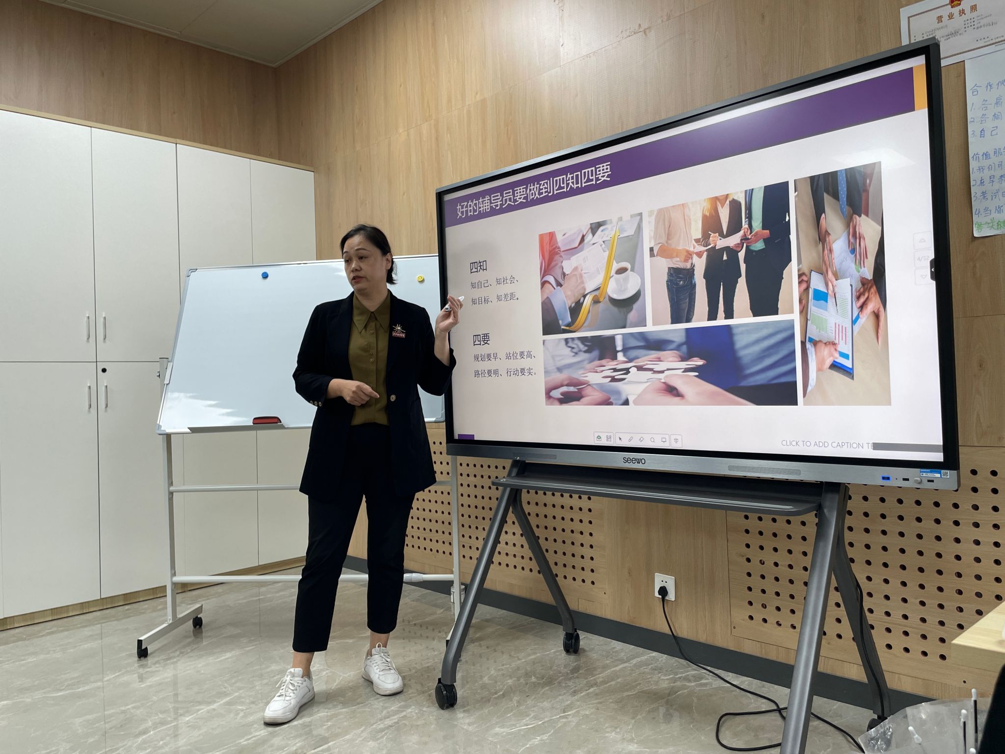紧接着,讲师又着重介绍了辅导员在学生职业生涯规划指导中应做到的“四知四要”。即知方向——明确学生的职业定位和发展方向;知兴趣——了解学生的兴趣爱好和特长所在;知优势——挖掘学生的核心竞争力和独特优势;知短板——帮助学生识别并克服自身不足。同时,辅导员还要做到要引导——引导学生树立正确的职业观和就业观;要支持——为学生提供必要的资源和帮助;要鼓励——激发学生的积极性和创造力;要反馈——及时给予学生职业规划的反馈和建议。这一理念的提出,为辅导员在学生职业生涯规划指导中提供了明确的指导方向。