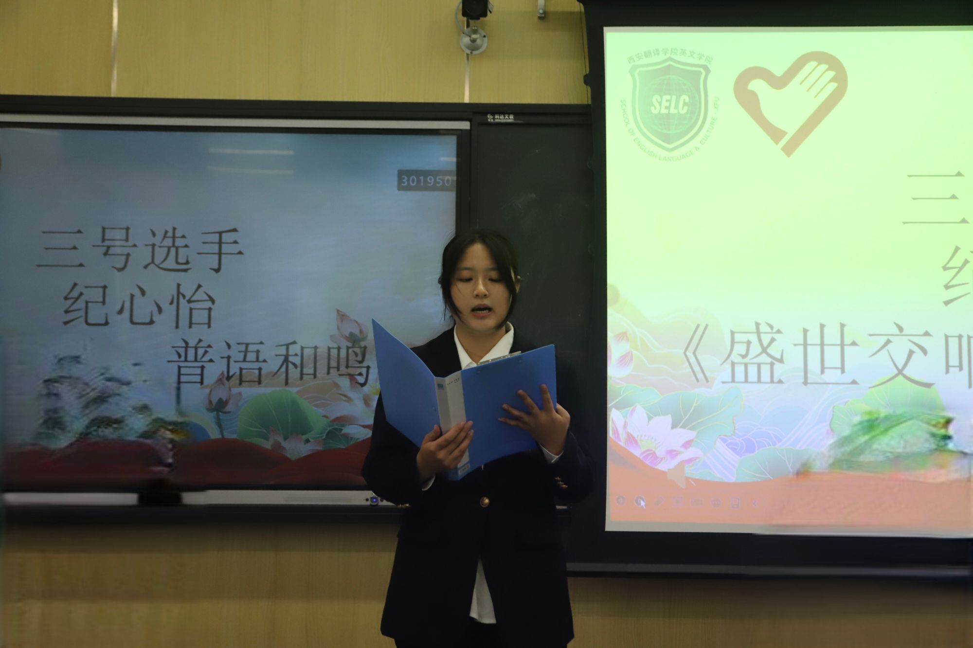 为更全面、更深入地弘扬中华优秀传统文化,切实提升学生的文化素养,大力培养学生华夏一语连心,大爱永驻的精神,在2024年10月11日,由共青团sunbet申博委员会主办,sunbet申博青年志愿者协会承办的“盛世华章,普语同音”推普活动初赛,在4211T教室圆满举行。