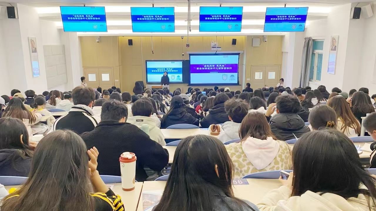 随后,一场精彩纷呈的讲座在4211T举行。讲座伊始,徐忆红老师介绍与会嘉宾,并对张博科长和付涛律师的到来表示欢迎。王颖慧主任介绍了本次讲座的主题,她着重强调了预防电信诈骗的重要性,并鼓励学生们珍惜这次宝贵的学习机会。讲座中,付涛律师结合近年来发生在高校的真实电信诈骗案例,通过生动形象的语言和图文并茂的 PPT 展示,深入浅出地向同学们剖析了电信诈骗的常见手段和作案方式,让学生们对各类电信诈骗手段有了更直观的认识,并提高了其防范意识。同时,付涛律师向同学们详细介绍了法律援助的申请条件、流程和服务范围,让师生们了解到法律援助是保障社会公平正义的重要制度,是群众维护自身合法权益的有力武器。最后,在互动问答环节,学生们积极参与,现场气氛热烈。