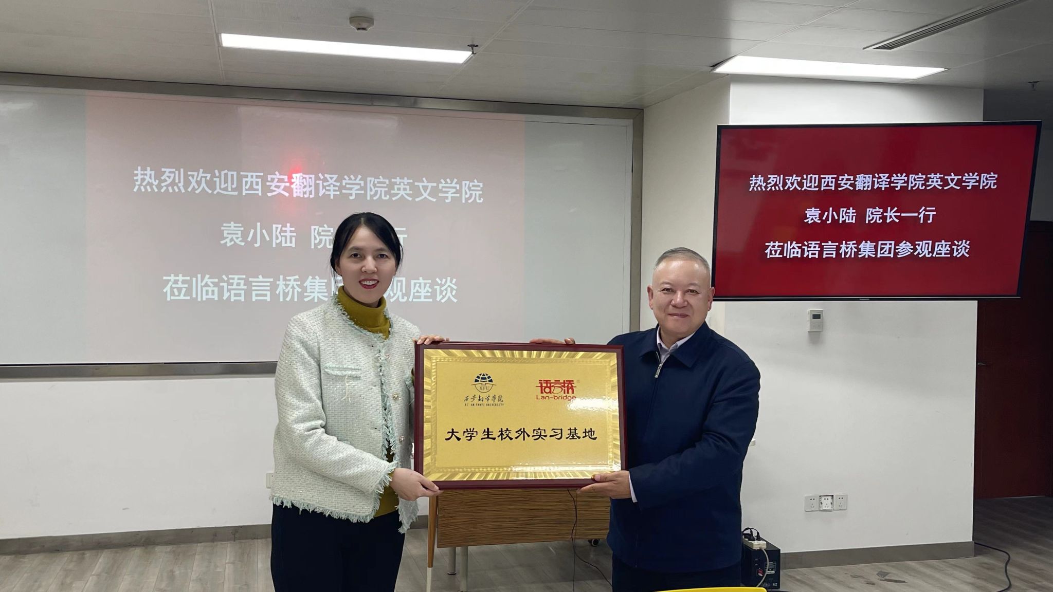 座谈会的最后,双方举行了实践教学基地签约暨授牌仪式。这一仪式不仅标志着双方合作的正式确立,更为未来的深入合作奠定了坚实基础。相信在双方的共同努力下,将推动翻译教育与语言服务产业的协同发展,培养更多优秀的翻译人才,为国家的文化交流与合作做出更大贡献。