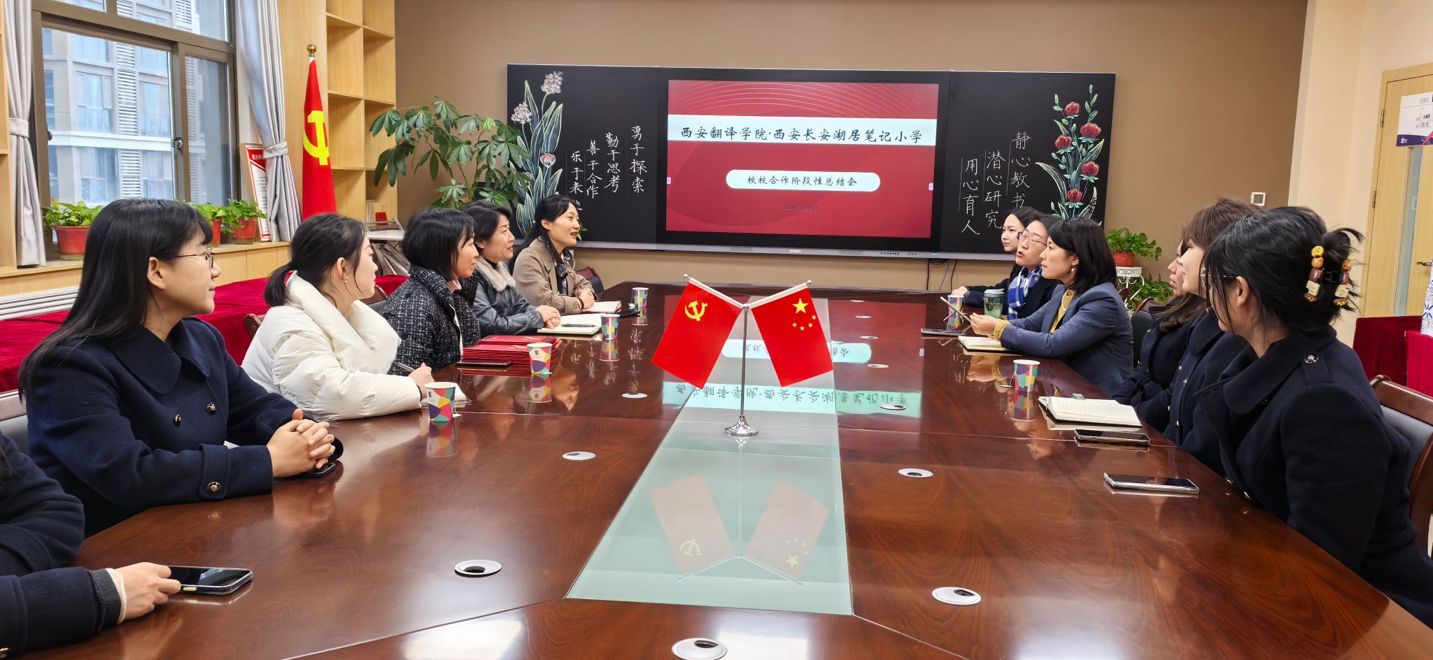 2024年12月9日下午,sunbet申博副院长李燕教授、英语系主任王颖慧及教师朱广珍等一行,赴西安长安湖居笔记小学,与该校校长屈冬宁女士以及英语教研组全体教师共同举办了校企合作座谈会。本次会议旨在进一步加强双方在英语基础教育与学生培养领域的深度合作与交流。