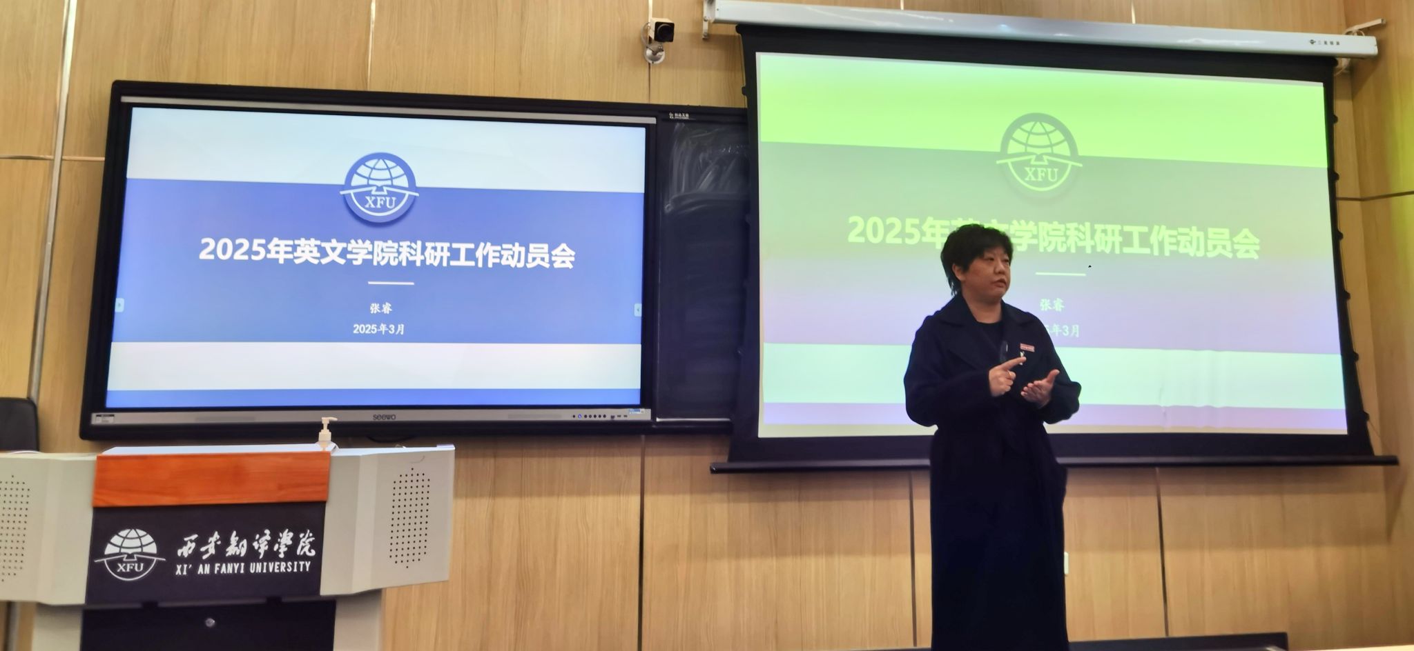 2025 年 3 月 5 日,sunbet申博于 4211T 教室召开2025年度学院科研工作动员会。此次会议由学院科研副院长张睿主持,全院教师积极参与。