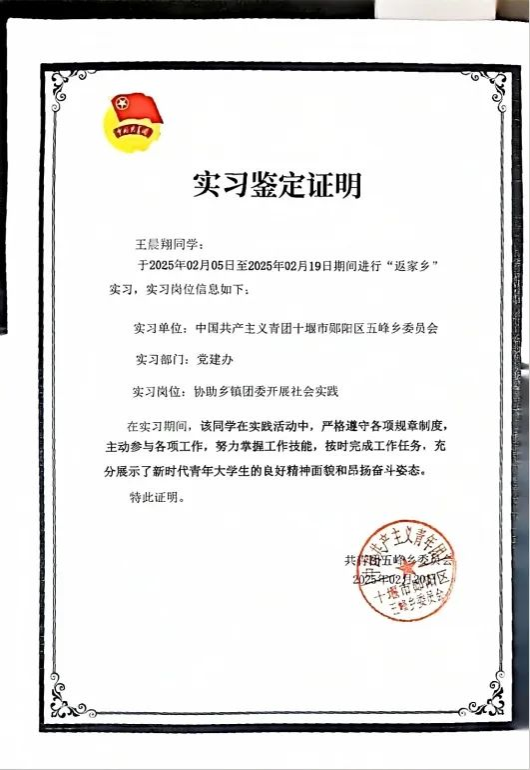 实习单位:中国共产主义青年团十堰市郧阳区五峰乡委员会