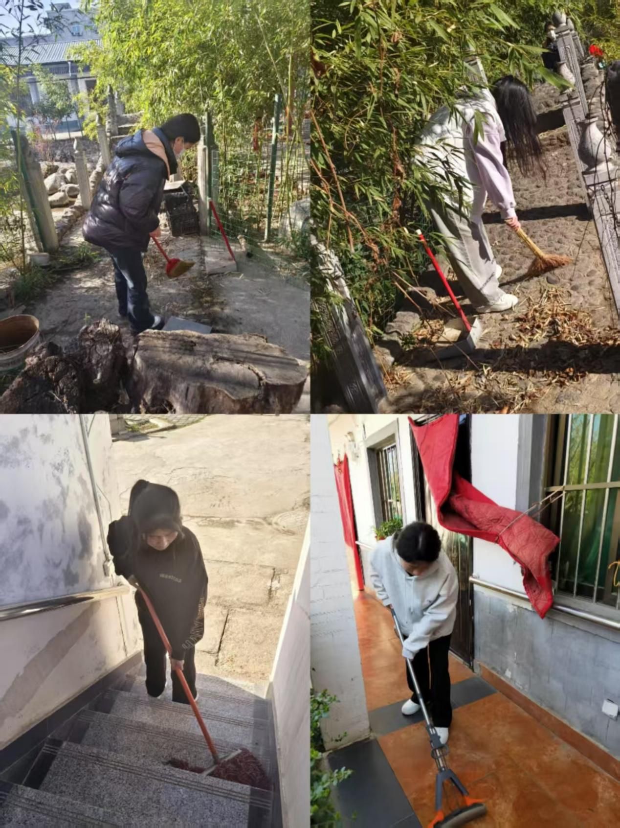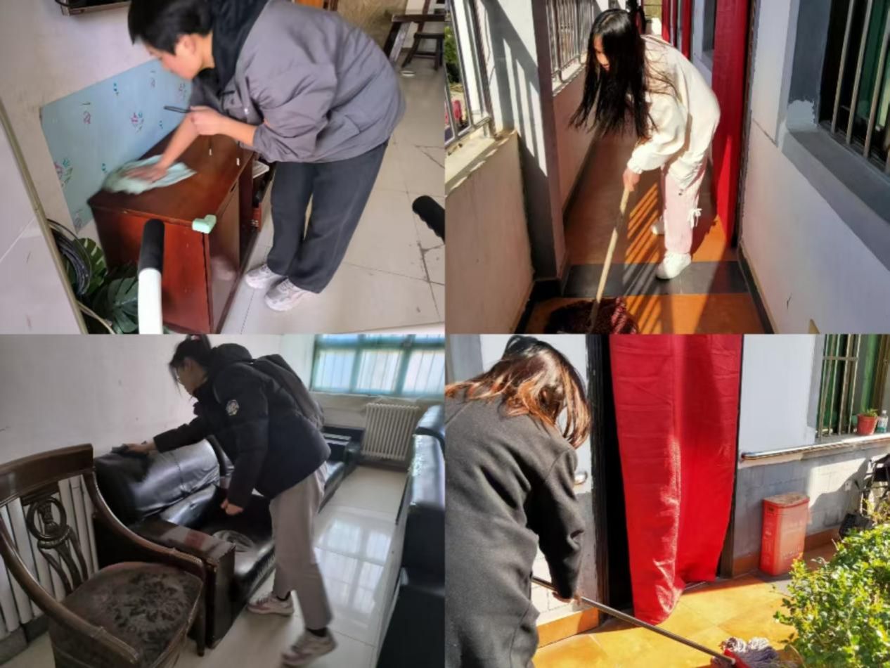 与此同时,另一部分志愿者积极主动地承担起打扫卫生的任务。他们拿起扫帚、抹布等工具,仔细地打扫房间的每一个角落,擦拭门窗、桌椅,为老人们创造一个干净整洁的居住环境。志愿者们不怕脏、不怕累,将房间整理得井井有条,让老人们的生活空间焕然一新。