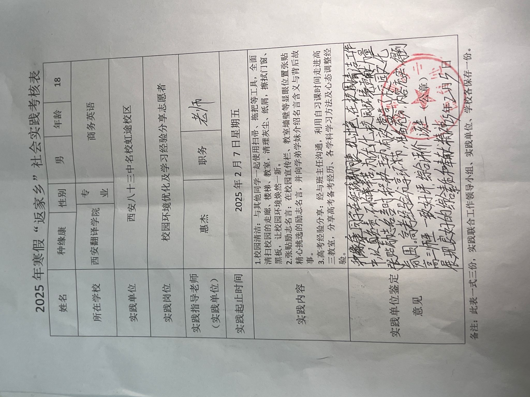 我在西安八十三中名校虹途校区参与“返家乡”实践,实习岗位是校园环境优化及学习经验分享志愿者。