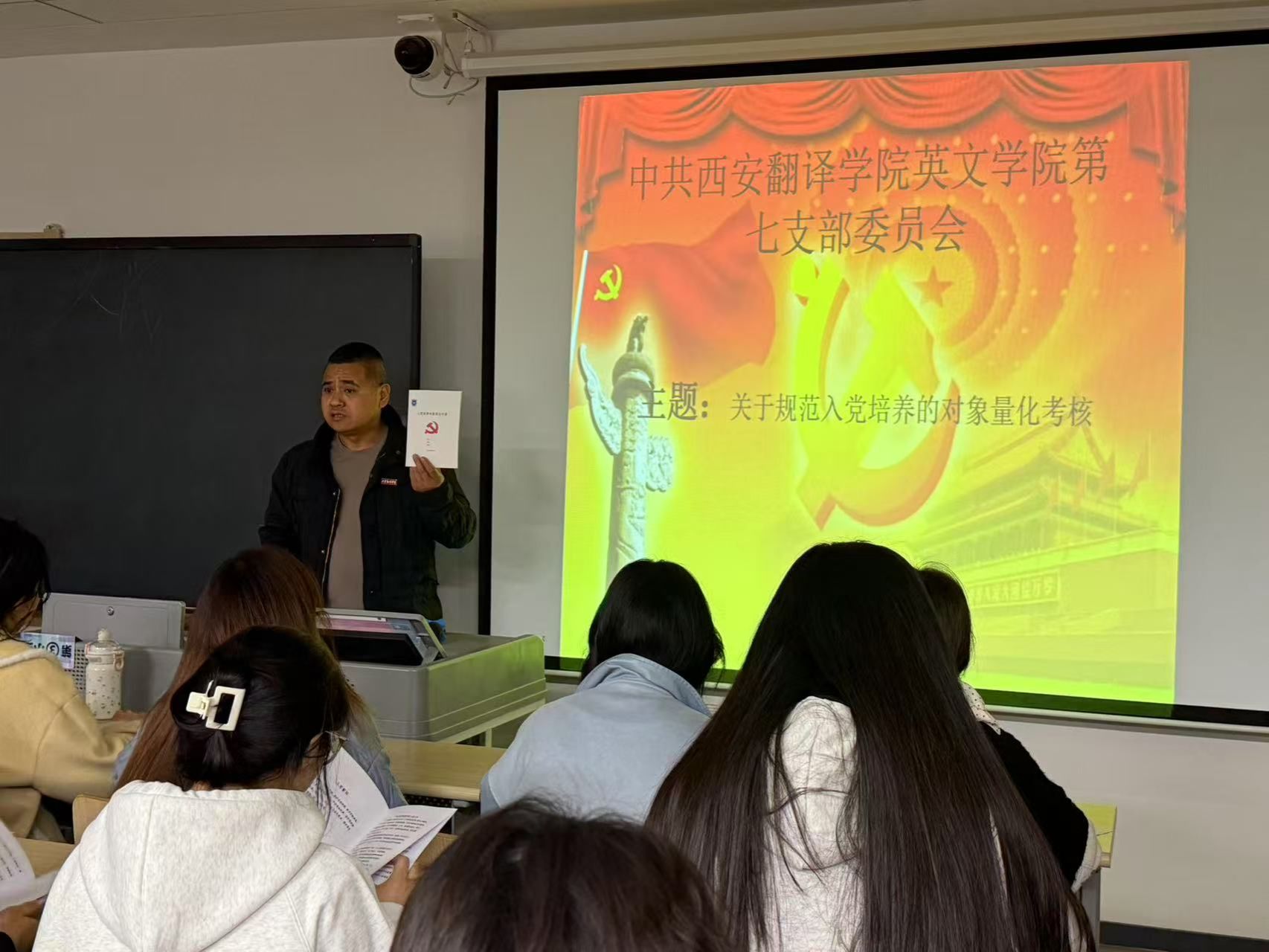 为深入贯彻落实党的二十大精神,进一步加强青年党员的培养与教育工作,中共sunbet申博第七支部委员会于2025年3月17日晚七点在4219M教室召开支部会议,主题为“关于规范入党培养对象的量化考核”,会议由sunbet申博第七党支部书记党建雄同志主持。