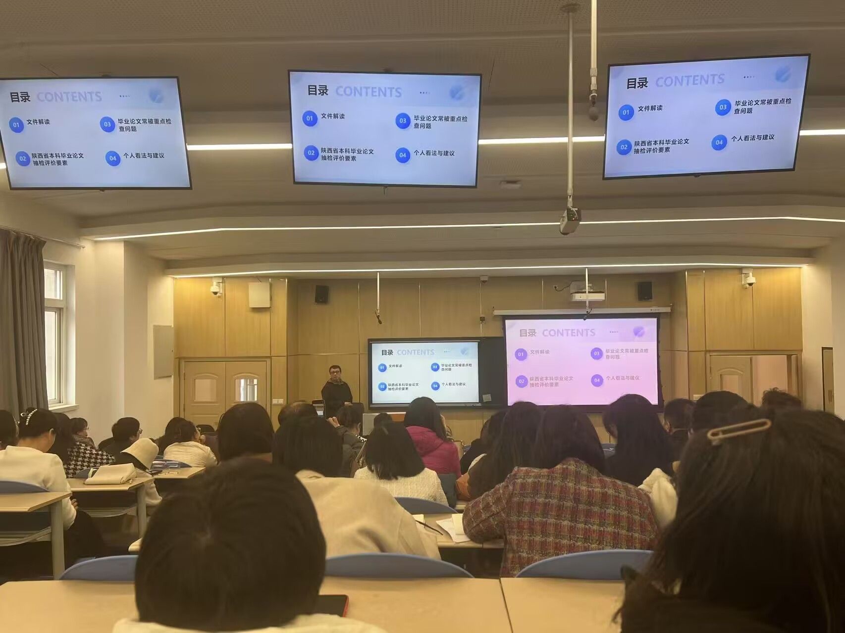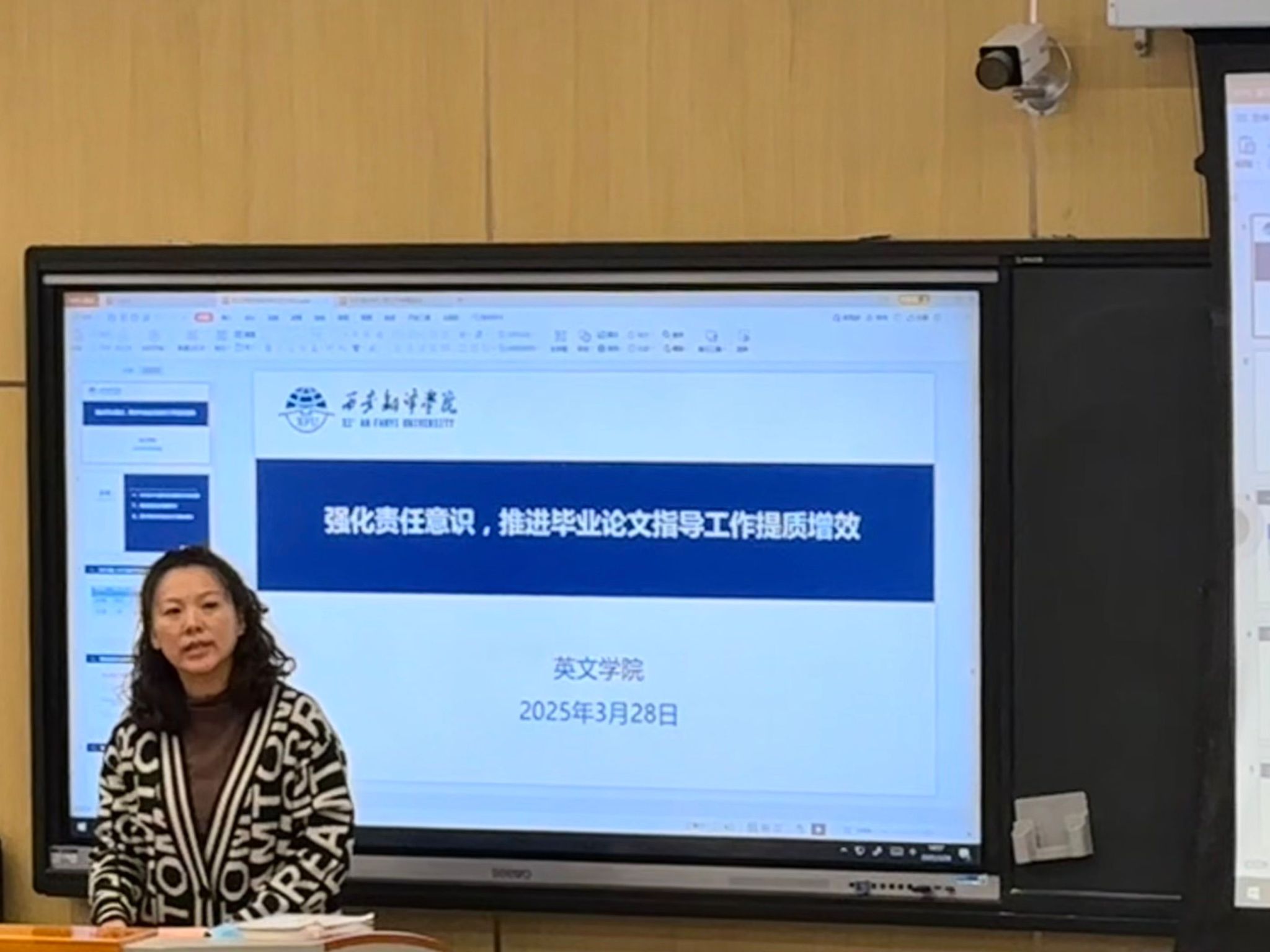 最后,校级督导王鹏老师结合指导实践,强调建立“问题前置处理”机制的重要性。他强调了在指导学生论文过程中对学生的严格要求,以及提前解决问题的重要性。确保所有问题在学生毕业前解决,以避免教学质量问题归咎于教师个人。他指出,提前规划和推荐相关文献对于提升论文质量至关重要,尤其是在学生英语水平不足或论文结构不清晰的情况下。他还提出,在专家审查时,格式规范性和内容连贯性起到关键作用,提前处理这些问题可使论文即便有瑕疵也能获得较好评价。