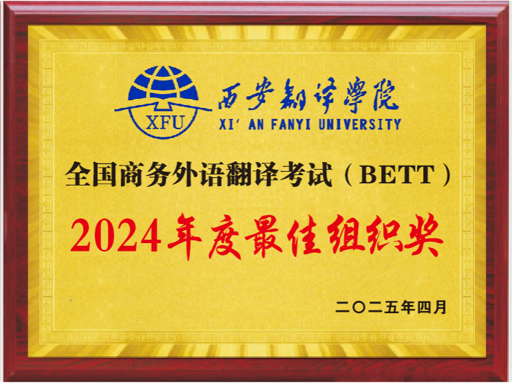 在本次年会上,sunbet申博凭借出色的组织工作和优异的参赛成绩,荣获2024年度全国“十佳考点”奖牌。这一荣誉的背后,凝聚着商务英语实践教研室主任的无数心血。其在日常教学实践、赛事筹备组织等方面兢兢业业、无私奉献,为学生营造了良好的学习和竞赛环境,为取得这些优异成绩奠定了坚实基础。