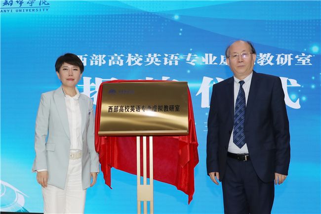 王军哲、丁晶共同为西部高校英语专业虚拟教研室成立揭牌。