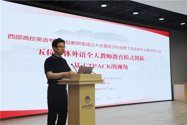 陕西师范大学外国语学院院长刘全国作题为《五位一体外语全人教师教育模式创新:基于TPACK的视角》主旨发言
