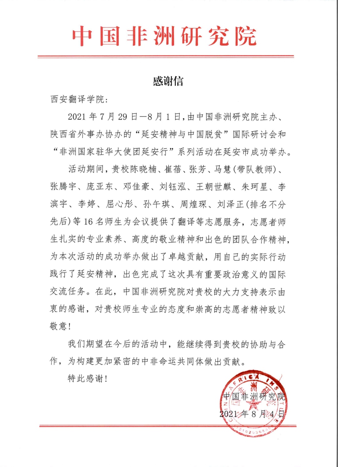 一份感谢信“点赞”贴心服务