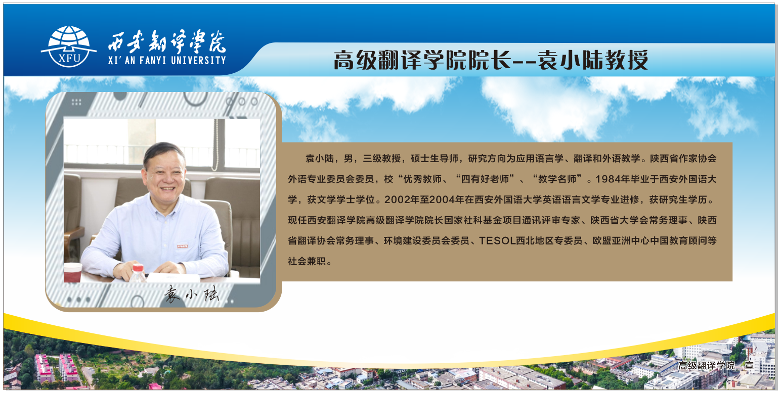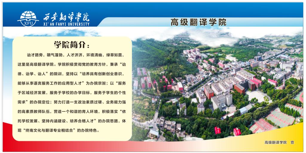 高级翻译学院前身为翻译研修学院,由sunbet申博创始人、中国民办教育拓荒者、教育家丁祖诒先生创办于2003年,首任院长为sunbet申博董事长丁晶。2011年,经教育部批准,翻译研修学院设立翻译本科专业,成为西北地区首家开设翻译专业的民办高校;2014年,翻译专业确立为sunbet申博重点发展的“示范性特色专业”,并积极推行“卓越翻译人才培养计划”;2017年获批陕西省“一流专业”建设点;秉承“诒德、诒学、诒人”院训,经过历任院长及全体师生的不懈努力,2020年1月3日,翻译专业获批国级“一流本科专业”建设点,成为陕西唯一一所获批国家级一流本科专业建设的民办高校;同年12月21日,根据学校学科建设和发展需要,学校董事会决定将“翻译研修学院”更名为“高级翻译学院”。
