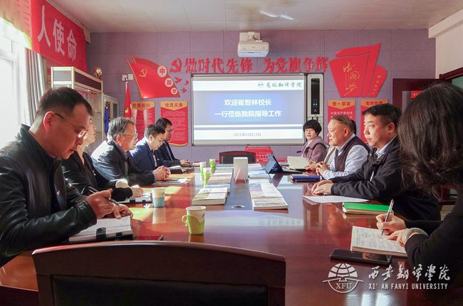为全面了解二级学院工作现状,为今后学校内涵建设和高质量发展提供依据,11月23日下午,校长崔智林、人力资源处处长马向阳、学生处处长张祥宇、党政办副主任张乐、教务处副处长孟贤军走访调研高级翻译学院,高级翻译学院院长袁小陆及领导班子成员参加调研座谈会。