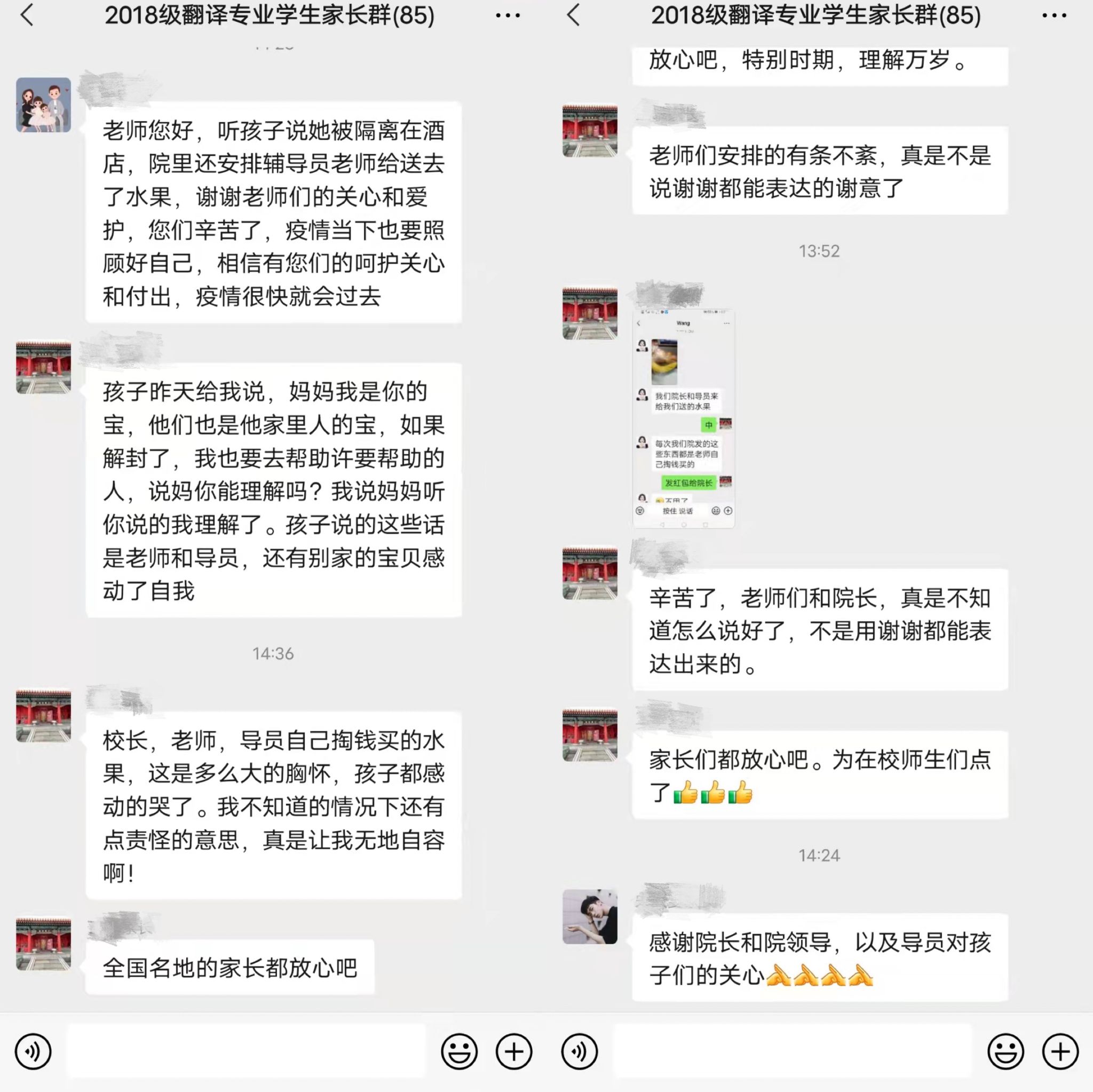 学生家长通过学生知晓学院此举,表示非常感动,相信孩子在学院领导和老师的关怀下,即使在隔离或封闭状态,仍然可以健康成长。并感谢学院一直以来的照顾,让家长真正放心,让情意温暖人心。