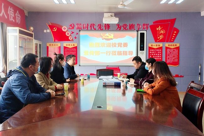 按照西译党发《2021》22号《关于评选2021年度精神文明建设和宣传思想工作先进集体、先进个人、优秀新闻通讯员的通知》要求,3月24日上午,党委宣传部副部长汪杰、理论宣传科科长龙思代表校精神文明建设和宣传思想工作领导小组对高级翻译学院2021年度相关工作进行检查。高级翻译学院党委书记、副院长蒋小军及党委委员参加汇报交流。