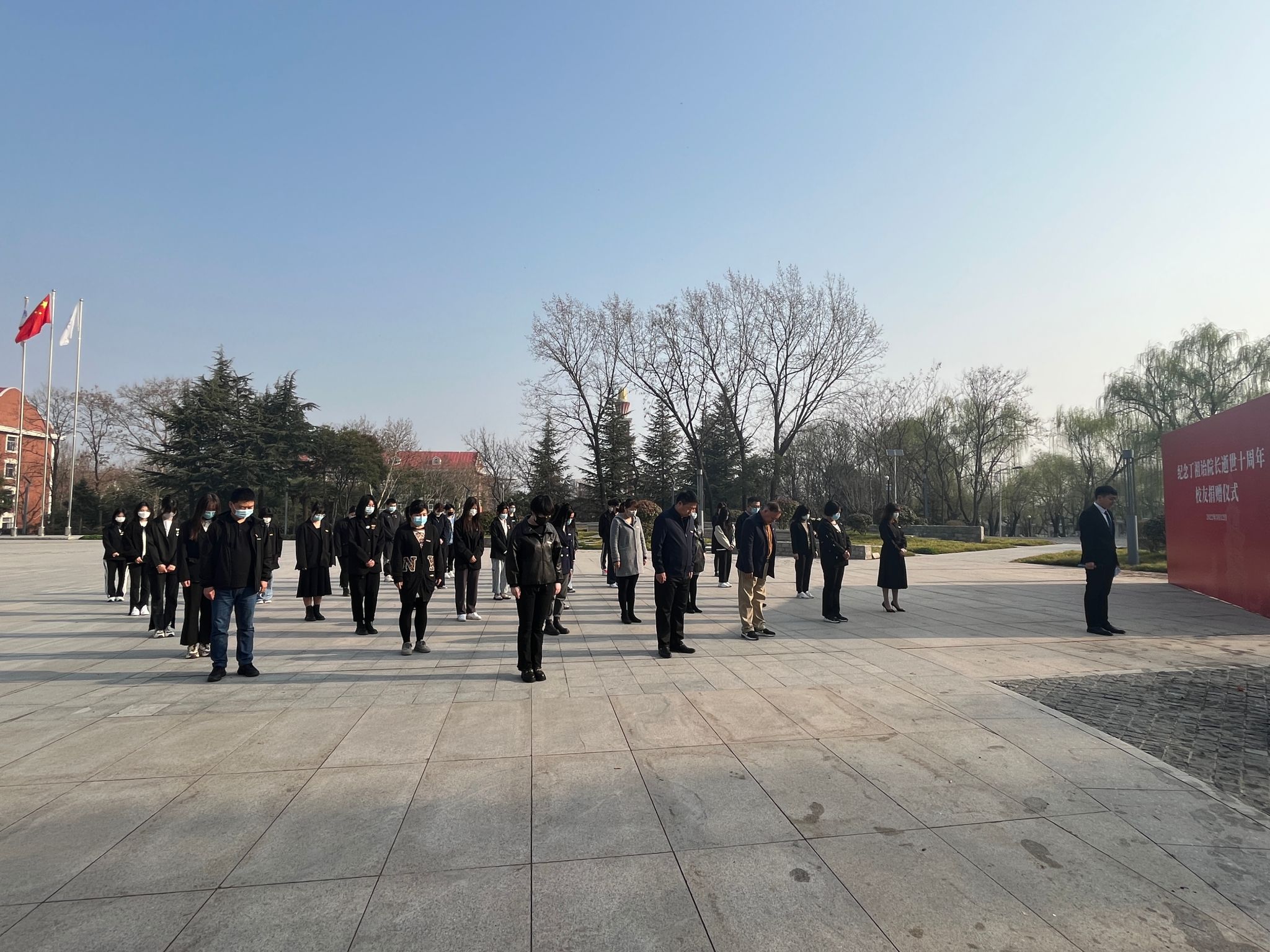 活动开始,全体师生代表默哀一分钟,以表追念。