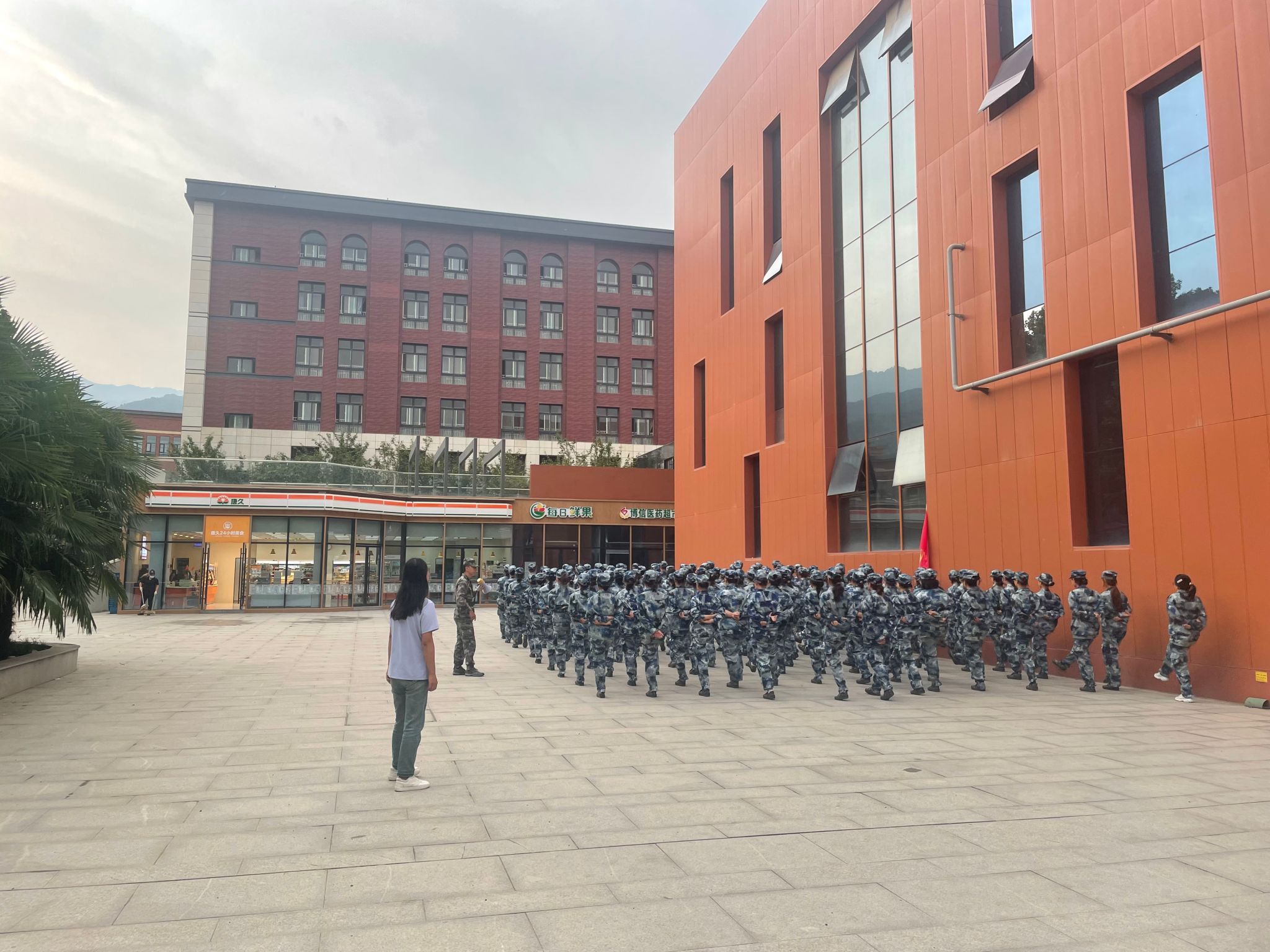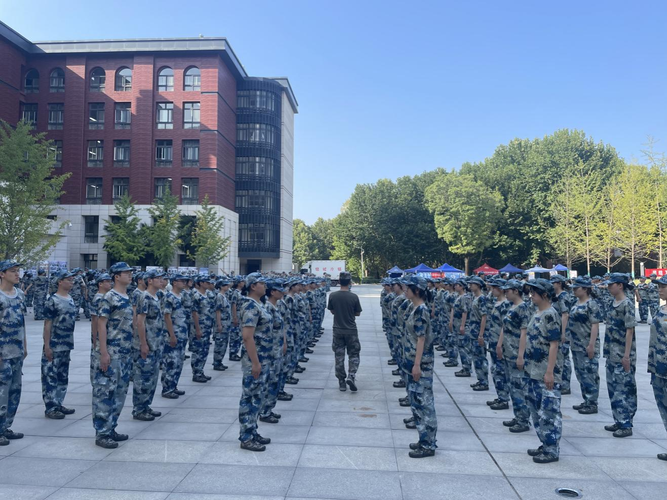 站军姿、齐步走、踢正步、走方阵、拉歌、早操……经过一个多周的军训,通过军训教官的训练和辅导员霍桐桐老师的悉心关怀,高翻新生学会了如何调整心态、如何与人沟通、如何团结协作。一位新生表示:“感谢教官,感谢辅导员,军训让我学会了如何面对困难不退缩,也让我认识到了团队合作的重要性。这些对我未来的大学生活有很大的帮助。”