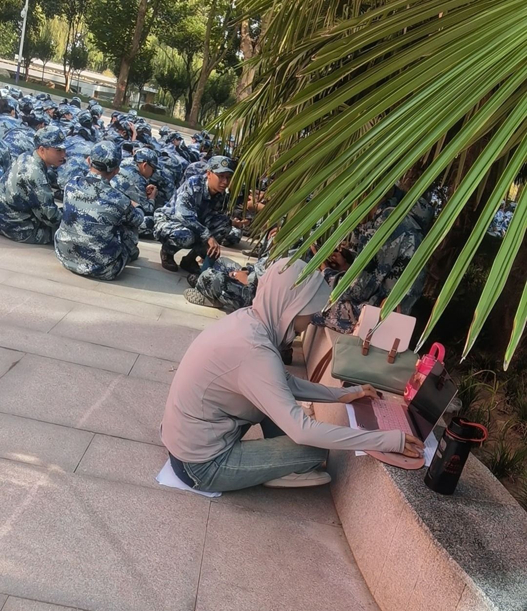 新生辅导员在军训中扮演着重要的角色:他们不仅仅是学生的良师益友,更是学生在军训生活中的坚实后盾。霍桐桐老师要负责学生的考勤,确保每个学生都能按时参加军训;还要时刻关注学生的身体状况,预防军训过程中的意外事故;此外,她还要完成各种信息统计工作、积极处理学生需求和困难,如适应新环、调整心态等,并利用军训休息的间隙,从理想信念教育出发,结合军训的意义,为学生上了一场场生动的思政课。