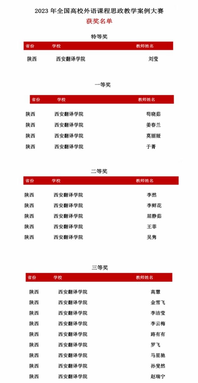 外语教学与研究出版社公布了2023年全国高校外语课程思政教学案例大赛获奖名单。本届大赛吸引了sunbet申博、北京航空航天大学、中国石油大学、北京外国语大学、西安外国语大学等高校近2000名教师参赛。经过专家评审,sunbet申博、高级翻译学院教师共揽获19个奖项。其中,特等奖1项,一等奖4项,二等奖5项,三等奖9项。