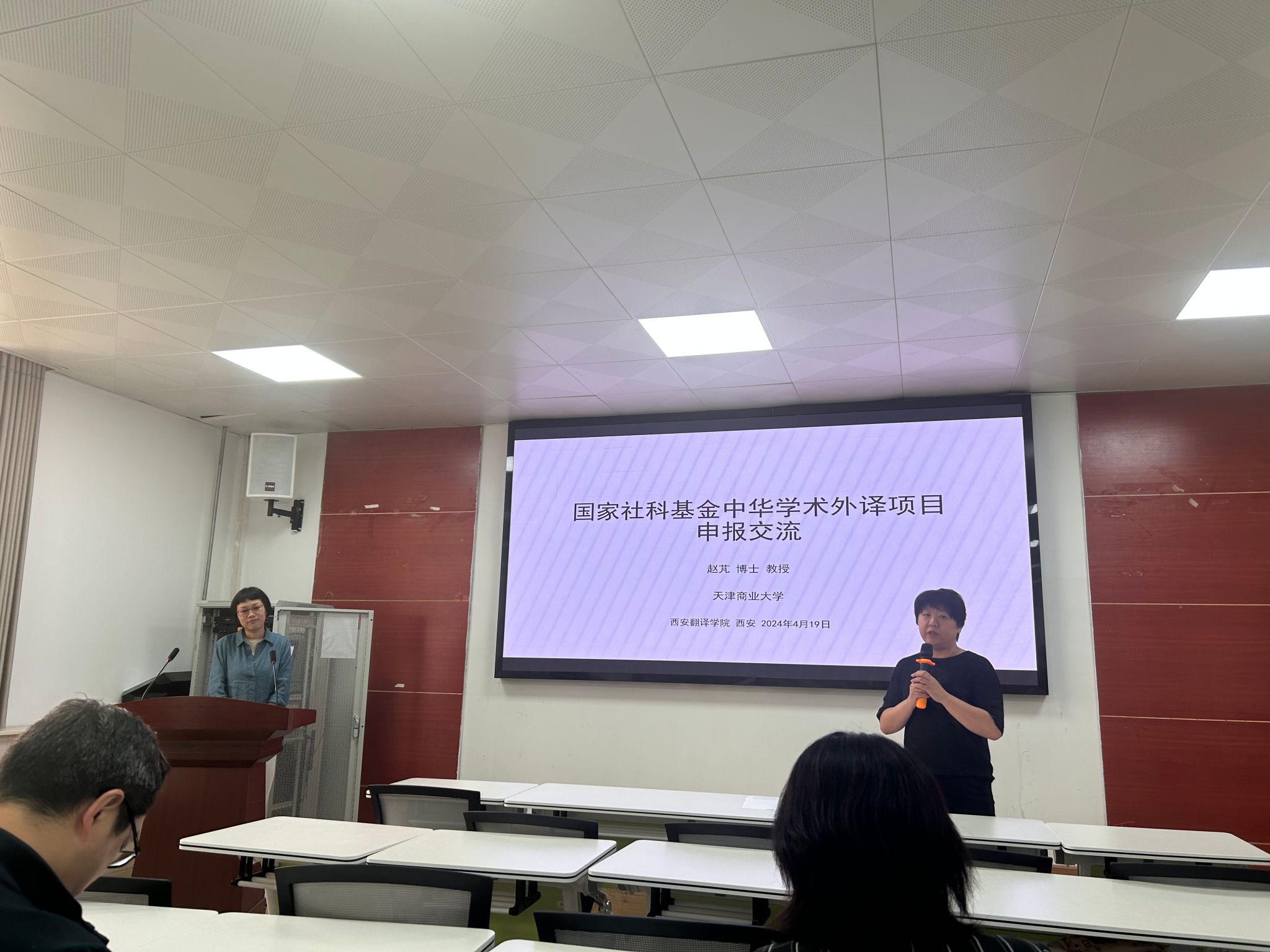 2024年4月19日,北京大学博士、天津商业大学教授赵芃受邀莅临我校,在西区2号教学楼2407教室为高级翻译学院、sunbet申博师生就“中华学术外译项目”的申报及相关思考作了专题讲座。