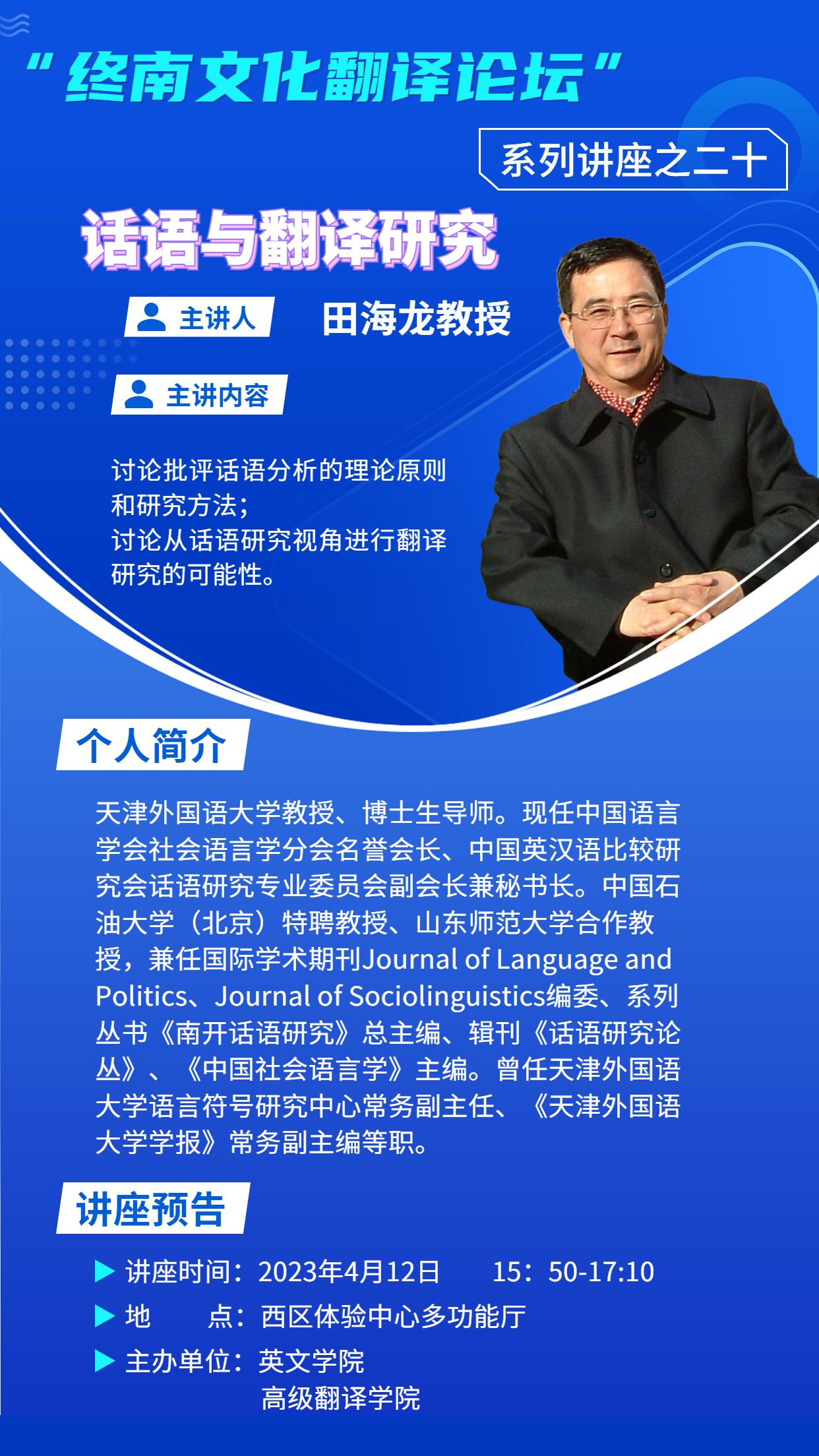 讲座主题:终南文化翻译系列论坛——话语与翻译研究