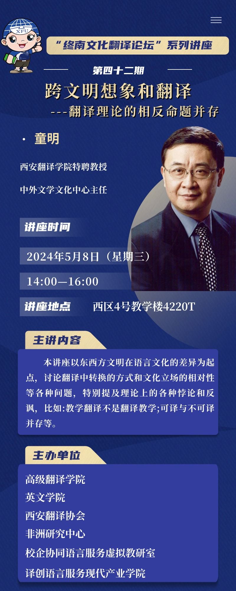讲座主题:“终南文化翻译论坛”系列讲座第四十二期——跨文明想象和翻译---翻译理论的相反命题并存