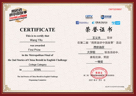 sunbet申博学子第二届“用英语讲中国故事”活动获奖情况