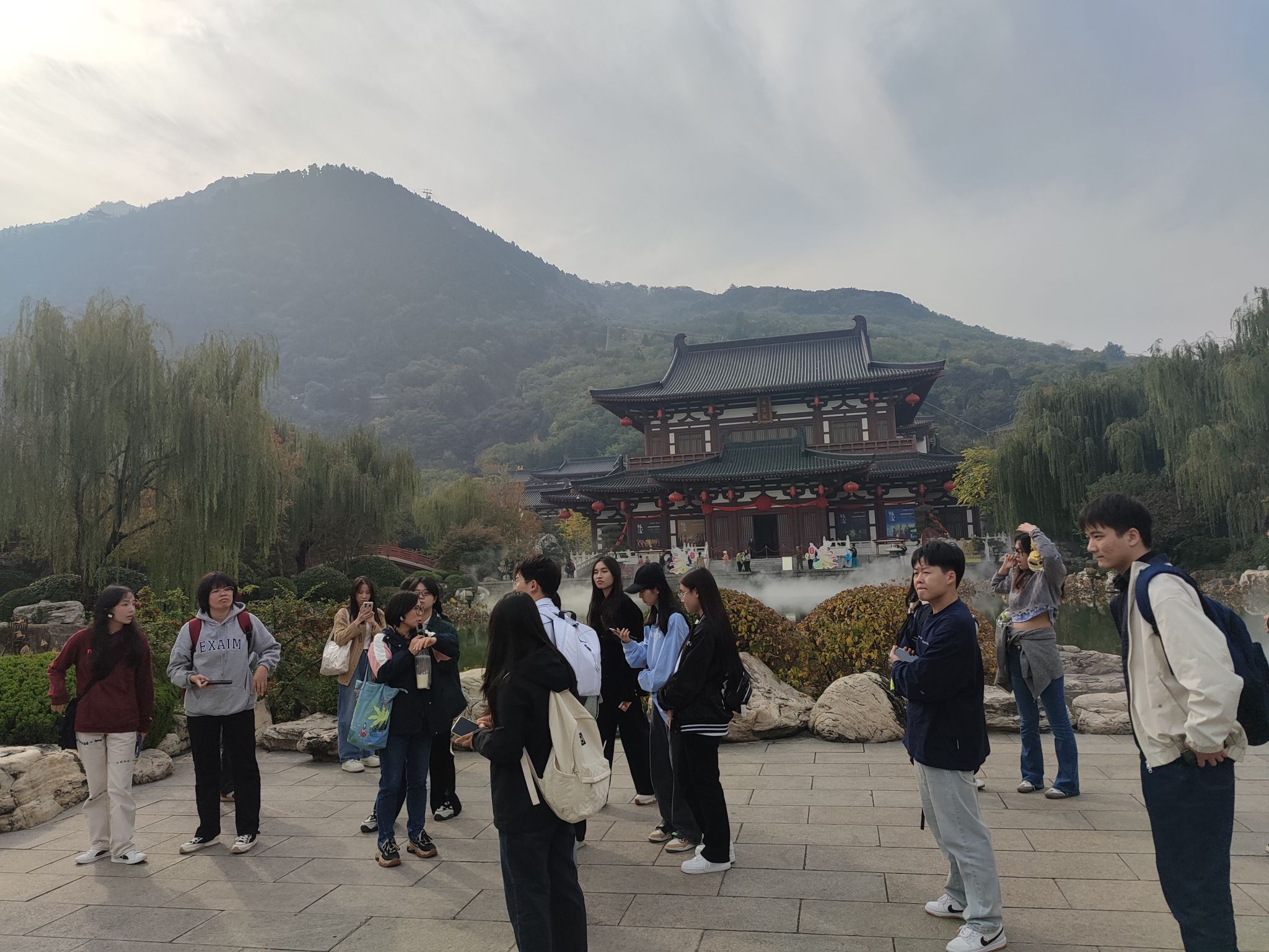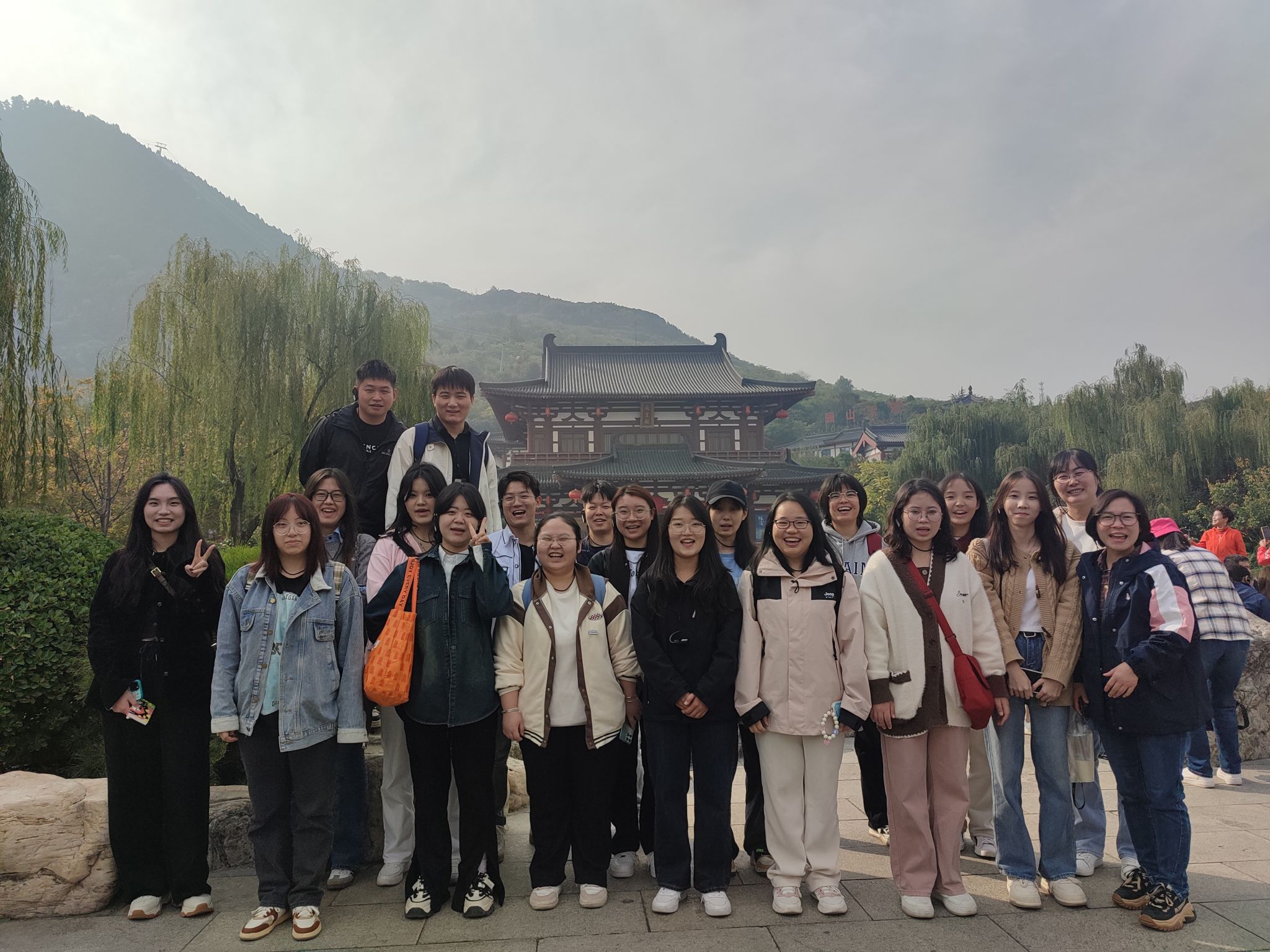 实习当天早上8:30学生们在东区图书馆门前集合,在孙逾男老师和旅行社任凌导游的组织下,学生们开启了为期一天的华清池实习之行。