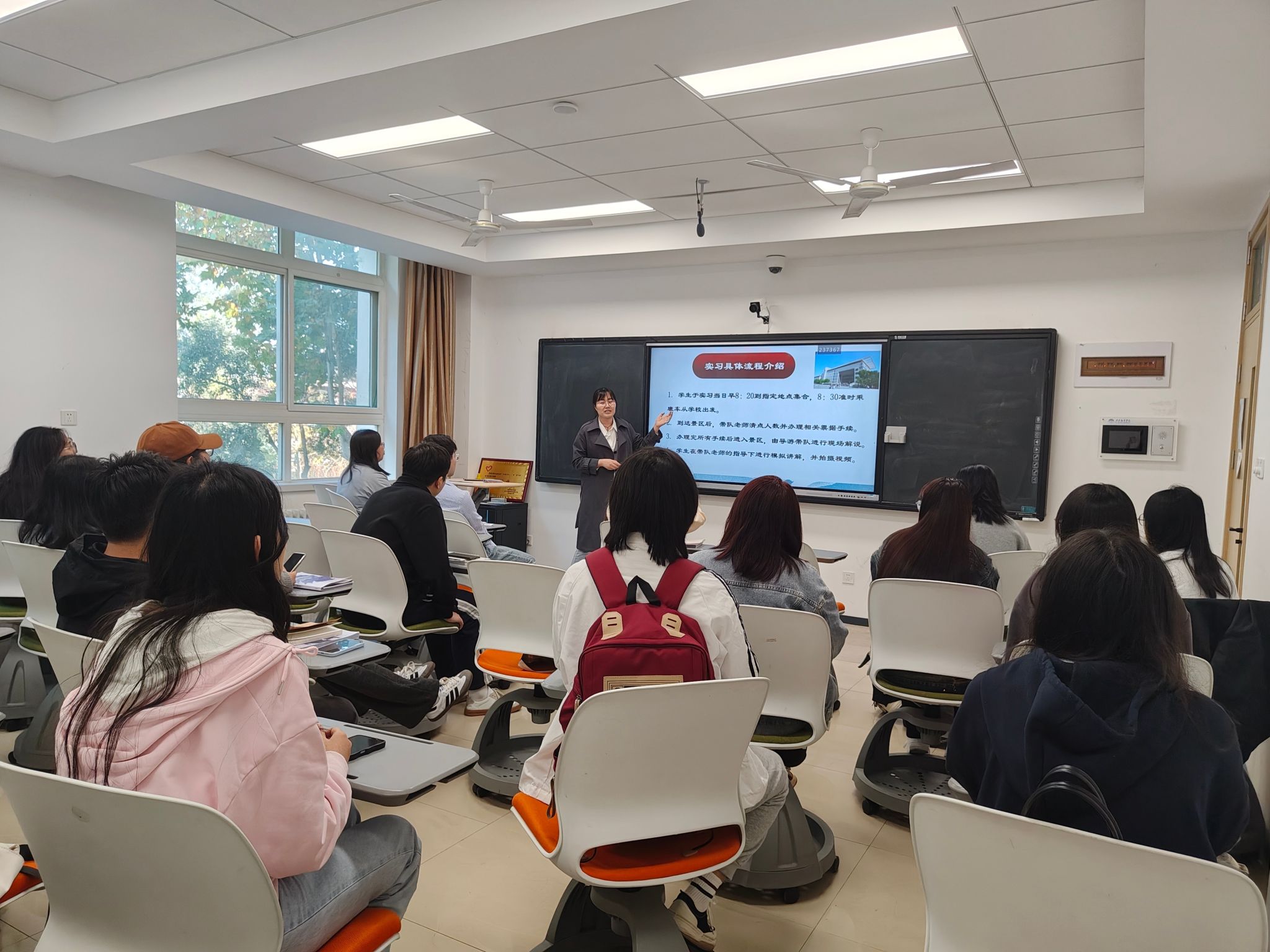 孙逾男老师正在给学生们认真讲解实习具体介绍