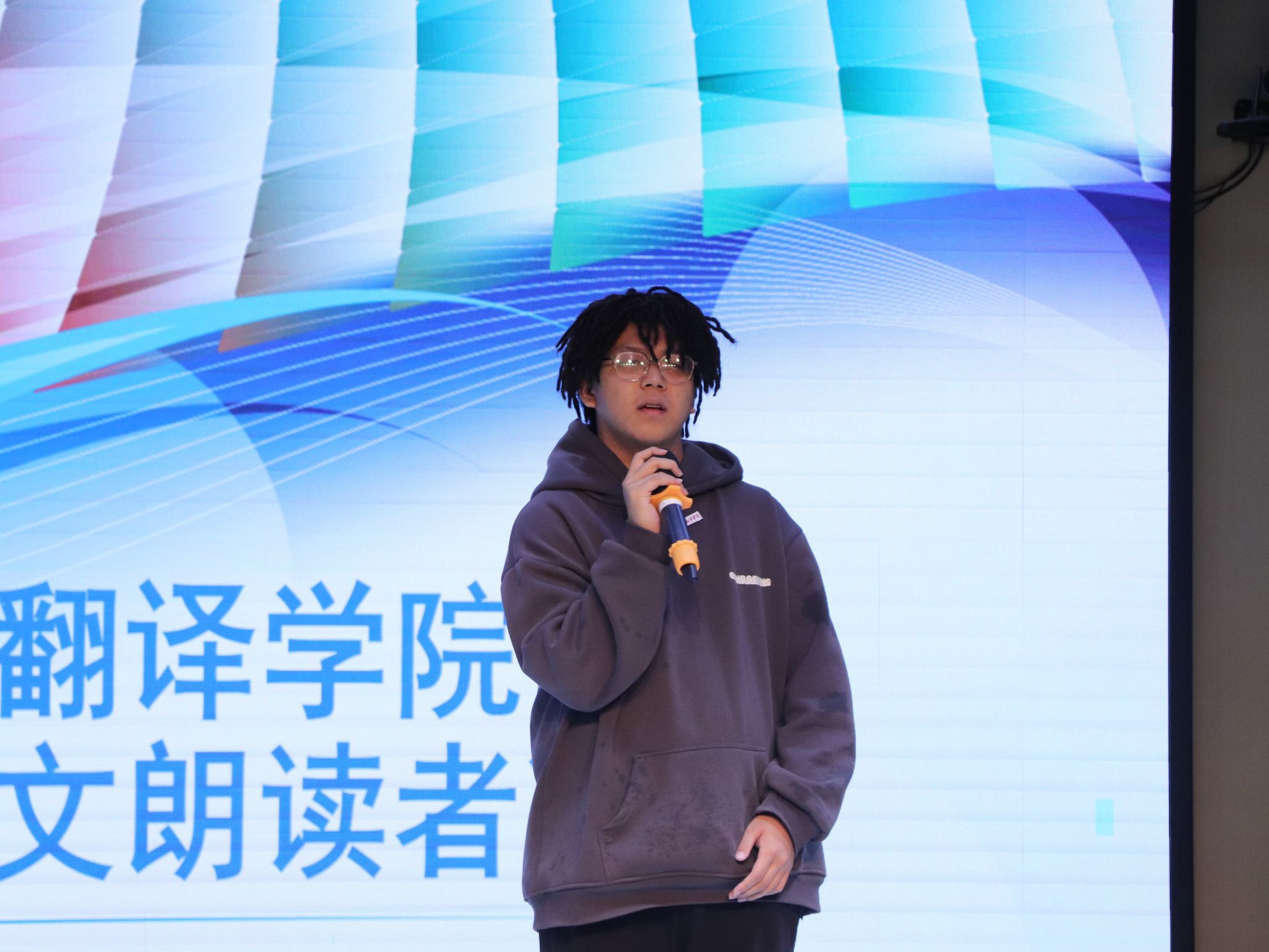 大赛共分英语类专业组与非外语类专业组双赛道,来自我校各个分院的30位优秀选手齐聚一堂,共同角逐英文朗读的桂冠。比赛由散文朗诵和故事汇两个环节构成。比赛现场氛围热烈,观众们为选手们的精彩表现欢呼喝彩。其中,英语类专业组8号刘恋同学在复述环节凭借着迅速的反应以及深厚的语言功底,赢得了现场观众的热烈掌声和评委们的一致好评。非外语类专业组16号赖嘉琪同学的朗诵以微笑为主题,用准确流利的口语和充沛的情感将散文演绎得淋漓尽致。其背景音乐与情感的完美结合,使得现场观众沉浸其中,展现了西译学子的青春风采和精神面貌。