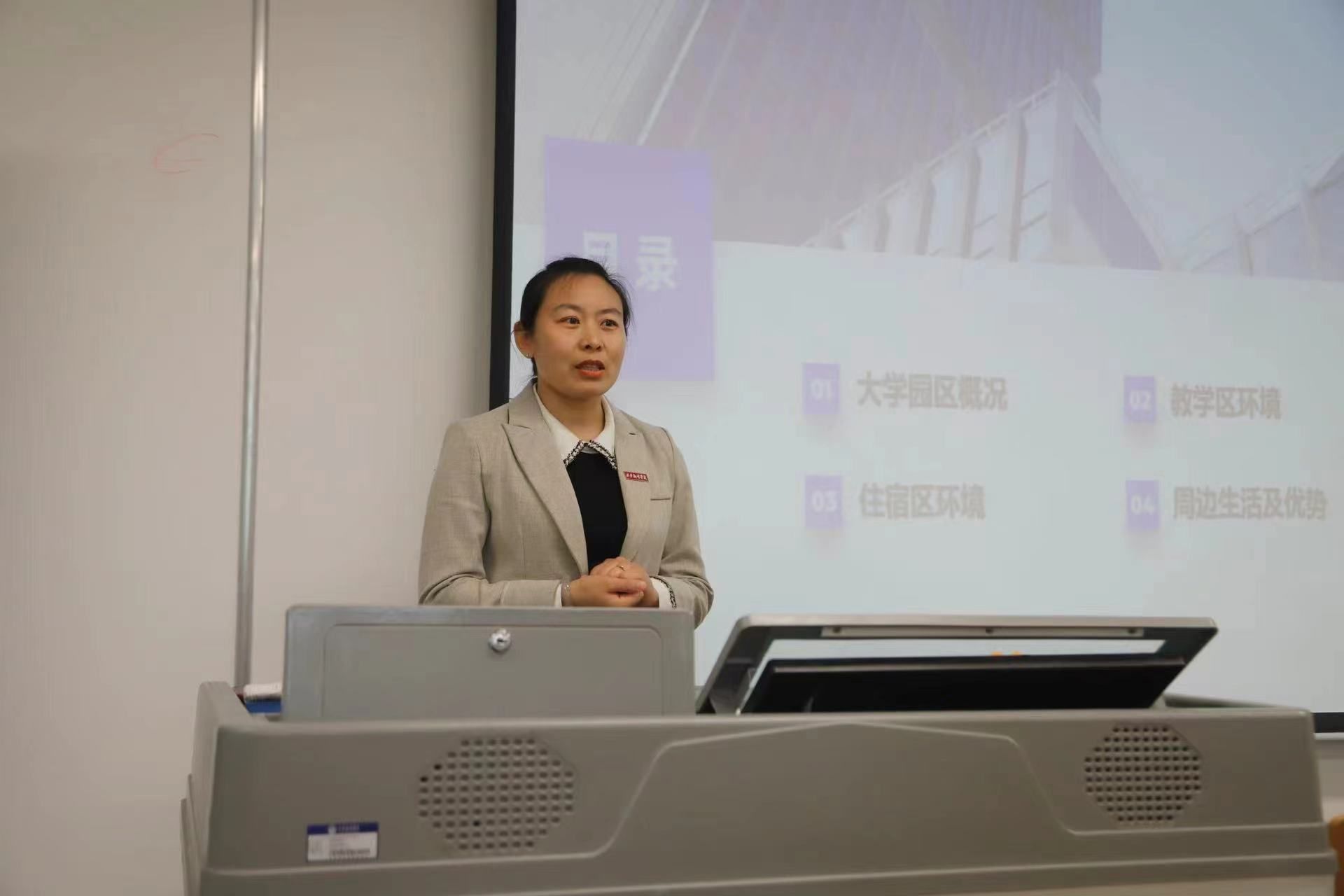 张泽艳老师首先对于本次2022级专科班前往译创国际大厦的整体工作进行了介绍,并从译创国际大厦的建设背景、译创国际大厦在学校的地位、译创国际大厦的地理位置、译创国际大厦的园区环境、译创国际大厦的相关活动展示等方面给所有同学进行了详细的解释说明。
