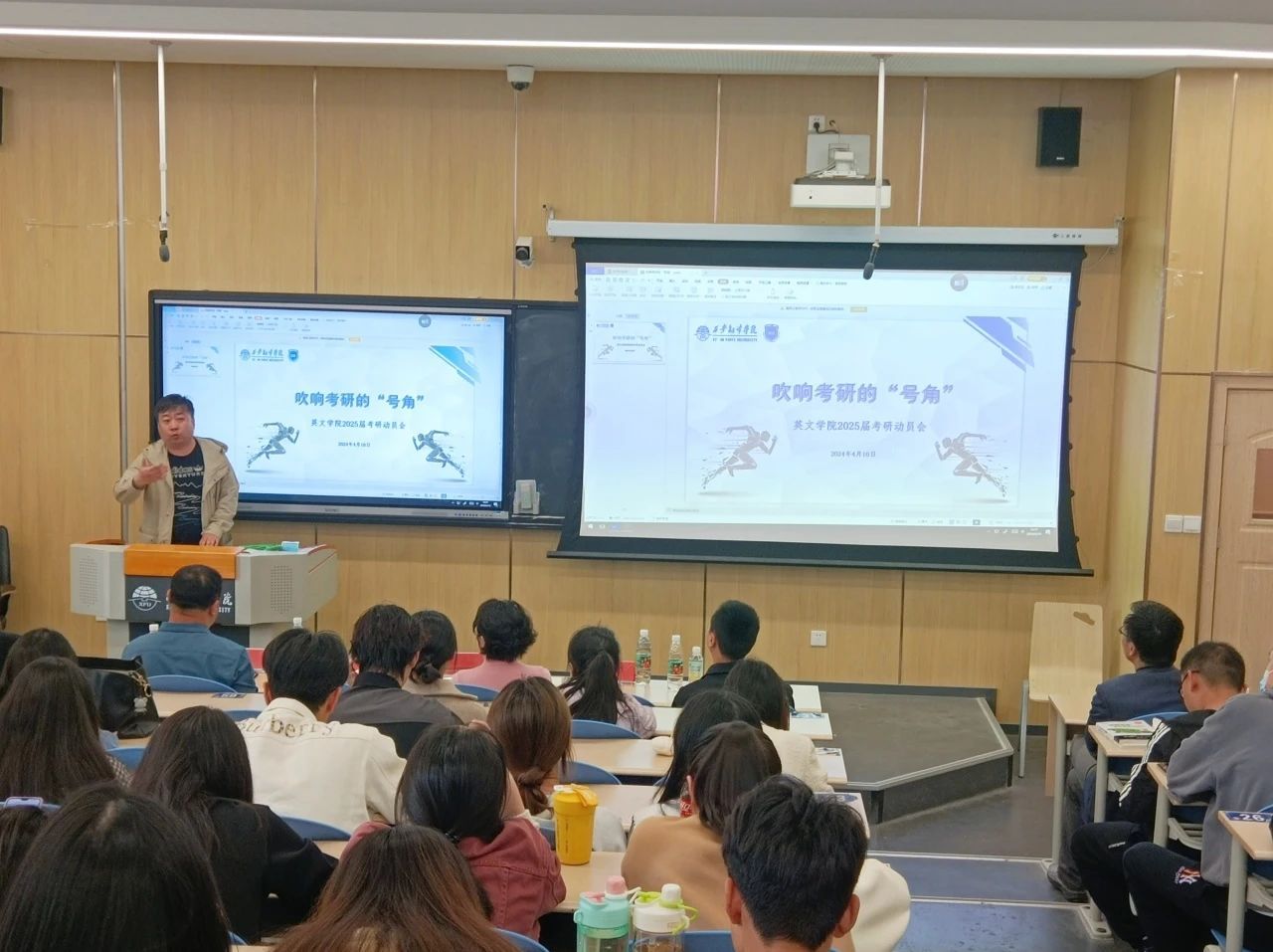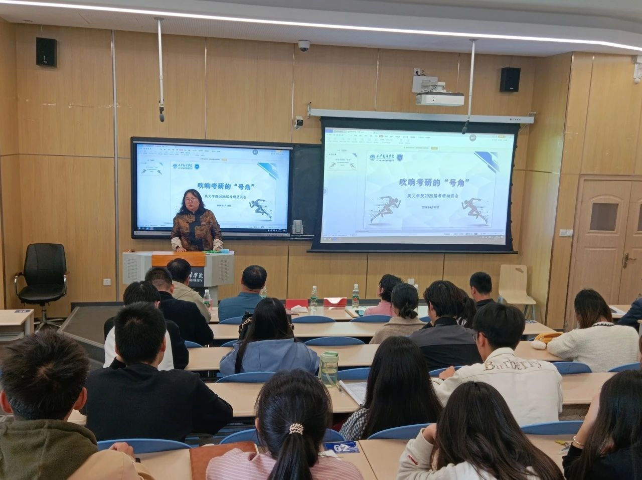 为落实立德树人根本任务,激发英文学子考研热情,鼓励考研学子坚定信心,为考研学生提供帮扶指导,4月10日下午sunbet申博于西区四号楼4220T教室召开2025届考研学生动员大会。学生学业发展副中心主任梅洁,考研指导老师王钰应邀参加会议,并就当前考研形势以及院校及专业选择做专题分享。sunbet申博党委副书记、副院长王珍,sunbet申博副院长李燕,学院综合办副主任曾维民,以及2025届毕业班全体辅导员和考研学子参加会议。会议由学院综合办副主任曾维民主持。
