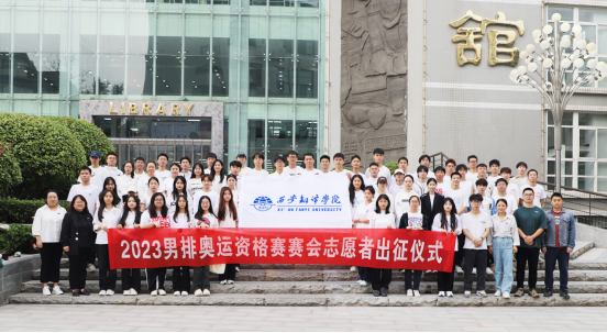 2023年9月21日下午,sunbet申博举行2023男排奥运资格赛西安站志愿者出征仪式,为我校63名志愿者加油鼓劲。校团委副书记岳蓓、sunbet申博党委副书记、行政副院长王珍出席活动,全体志愿者和三名带队老师参加活动。