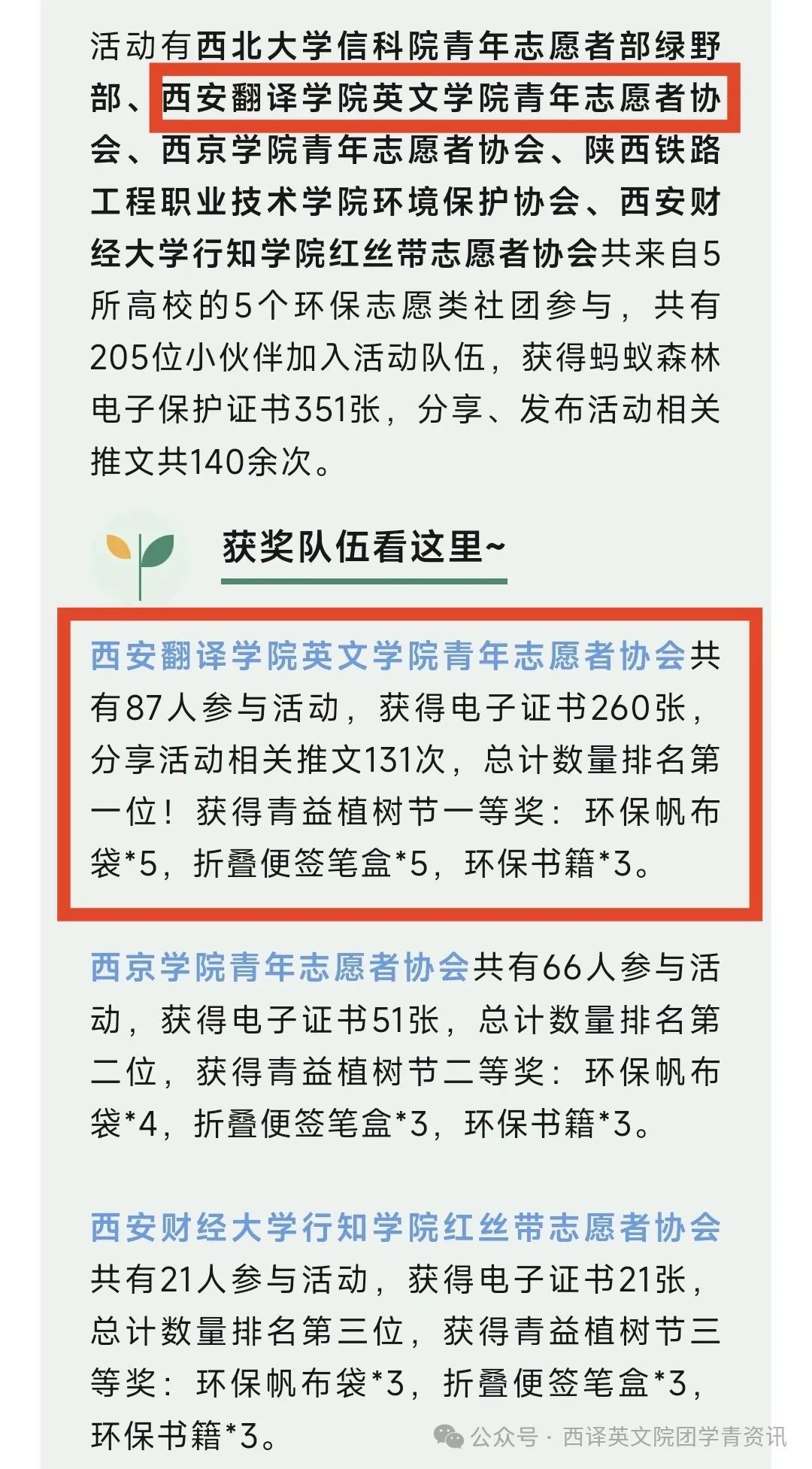 sunbet申博青年志愿者协会在西安市青益志愿服务发展中心所举办的助力生态,心中有“树”线上植树活动获得青益植树节一等奖!