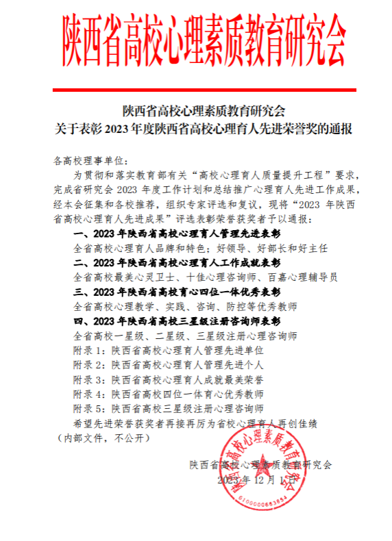 陕西省高校心理素质教育研究会文件