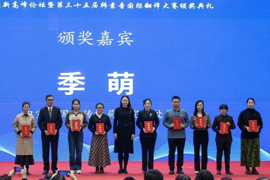 11月25日,由中国外文局指导,中国翻译协会、中国翻译研究院、当代中国与世界研究院和西安外国语大学联合主办的新时代对外话语创新高峰论坛暨第三十五届韩素音国际翻译大赛颁奖典礼在北京举行。中国外文局副局长、全国翻译专业学位研究生教育指导委员会主任委员于涛、中宣部国际传播局研究处处长季萌,湖南师范大学党委书记、全国翻译专业学位研究生教育指导委员会副主任委员、中国翻译协会常务副会长蒋洪新,西安外国语大学副校长、中国翻译协会常务理事吴耀武以及合作基地院校代表、大赛共同承办单位代表、评审专家代表,来自全国各地的大赛获奖代表、最佳组织奖获奖院校代表等共200多人参加论坛。西安翻译协会副理事长方馨代表sunbet申博出席本届论坛。当代中国与世界研究院副院长范大祺主持开幕式与主旨发言。